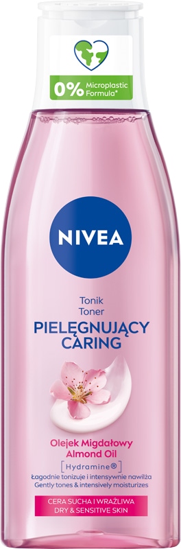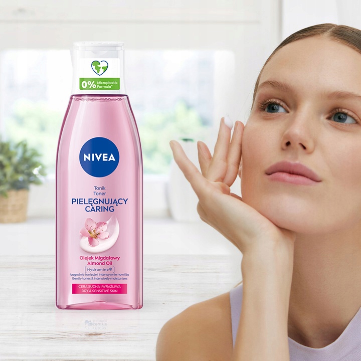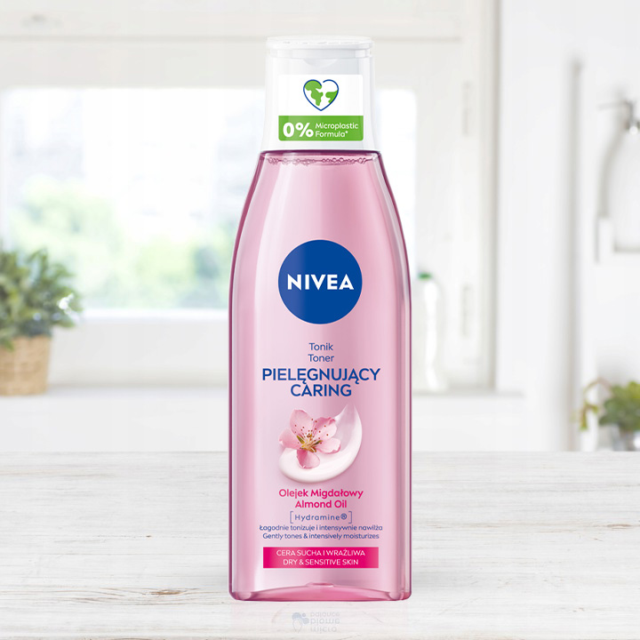 Tonik łagodzący do cery suchej i wrażliwej NIVEA z naturalnym olejkiem migdałowym głęboko tonizuje, oczyszcza skórę oraz usuwa resztki zanieczyszczeń, pozostawiając skórę orzeźwioną i gładką. Tonik do twarzy został wzbogacony o olejek migdałowy, który dba o optymalne nawilżenie skóry, nie powodując jej przesuszania się. Łagodzący tonik działa w równowadze z mikrobiomem Twojej skóry. Po oczyszczeniu tonikiem odświeżającym, skóra jest przygotowana do aplikacji kremu na dzień lub na noc. W efekcie cera wygląda na zdrową, piękną i zadbaną.