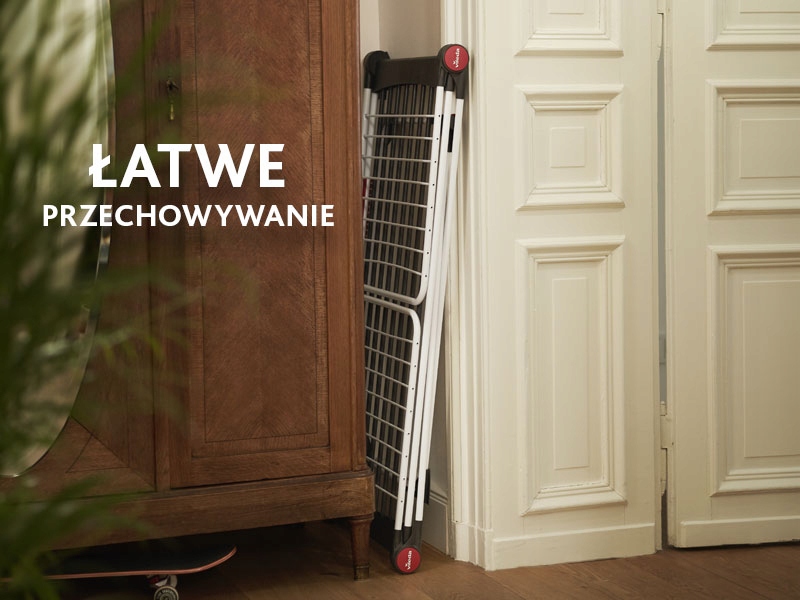 Dzięki 21 metrom linek, składanym wysokim skrzydłom i wieszakowi na drobną bieliznę, każdy element garderoby znajdzie swoje miejsce.