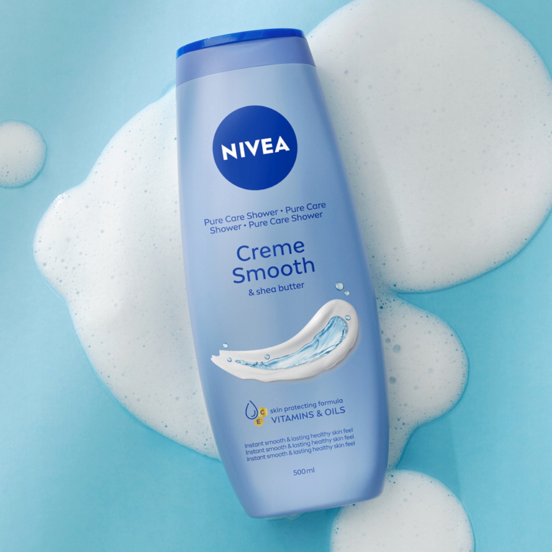 NIVEA Pielęgnujący żel pod prysznic Creme Smooth o kremowej konsystencji, z dodatkiem cennego masła shea, otacza Twoją skórę miękką i delikatnie pachnącą pianą. Pielęgnacyjna formuła żelu skutecznie oczyszcza i dba o skórę Twojego ciała, zachowując równowagę jej mikrobiomu, a także zapewnia świeżość i czystość przez długi czas. Dyskretny, przyjemny zapach żelu pobudza Twoje zmysły, pozostawiając Twoją skórę gładką i miękką. Tolerancja dla skóry potwierdzona dermatologicznie. Dbając o skórę dbamy również o środowisko, dlatego nasza formuła nie zawiera mikroplastików* i jest w 99% biodegradowalna**, a butelka nadaje się do ponownego przetworzenia***.