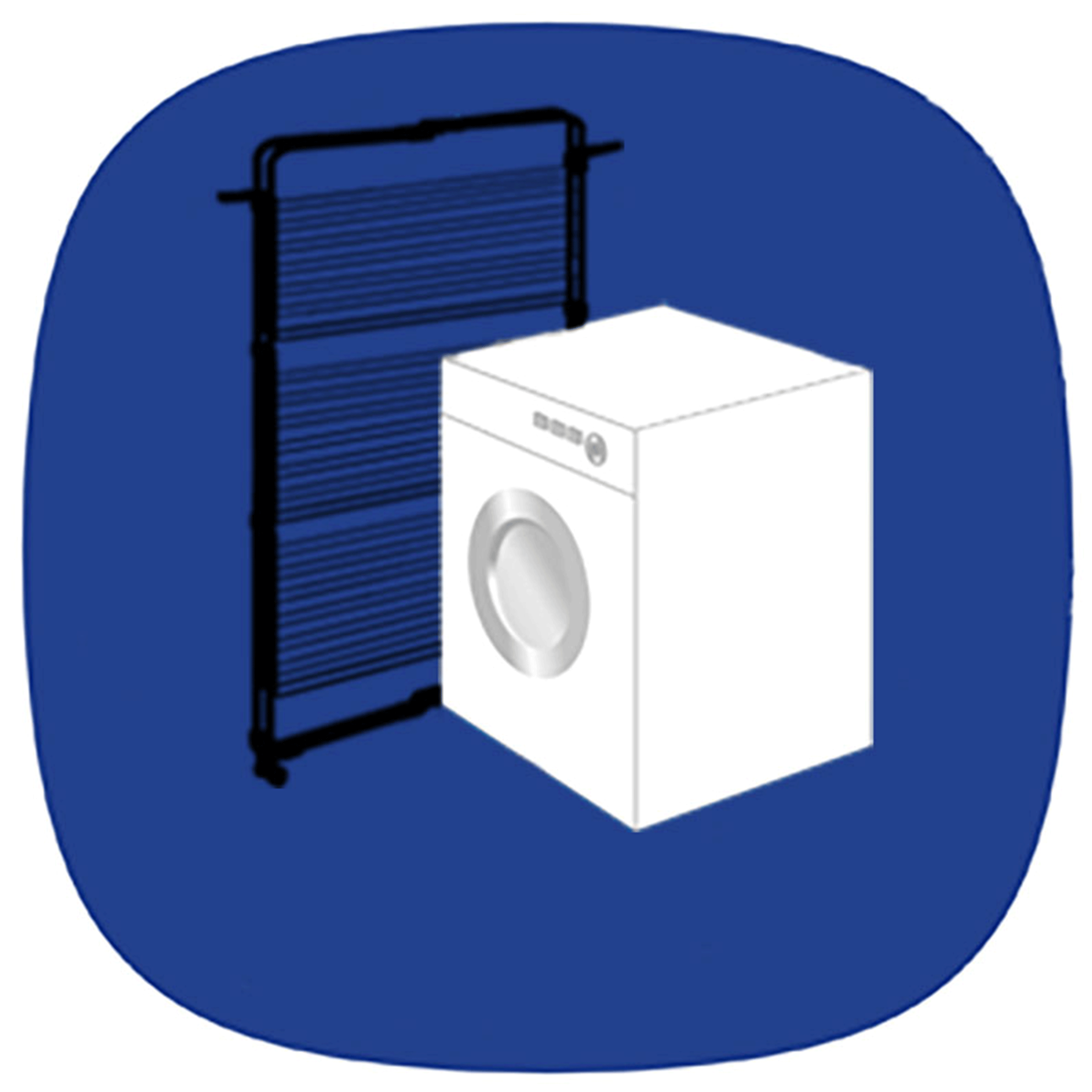 Kompaktowe wymiary złożonej suszarki umożliwiają przechowywanie jej za meblami czy w innej niewielkiej przestrzeni.