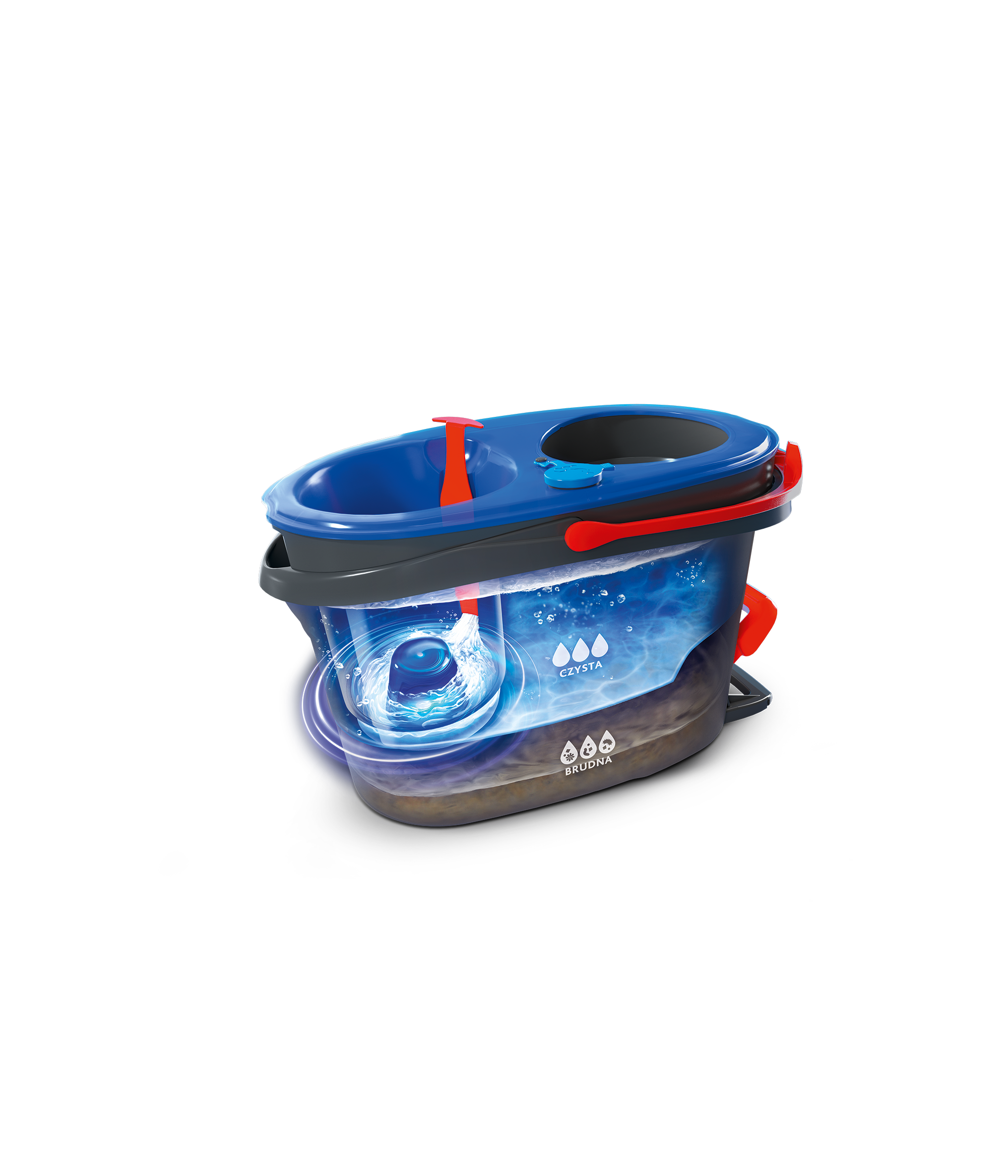 Dwukomorowe wiadro oddziela czystą wodę od brudnej, zapewniając bardziej higieniczne mycie podłóg. Dzięki temu zawsze mopujesz świeżą wodą.Bezdotykowe wyciskanie