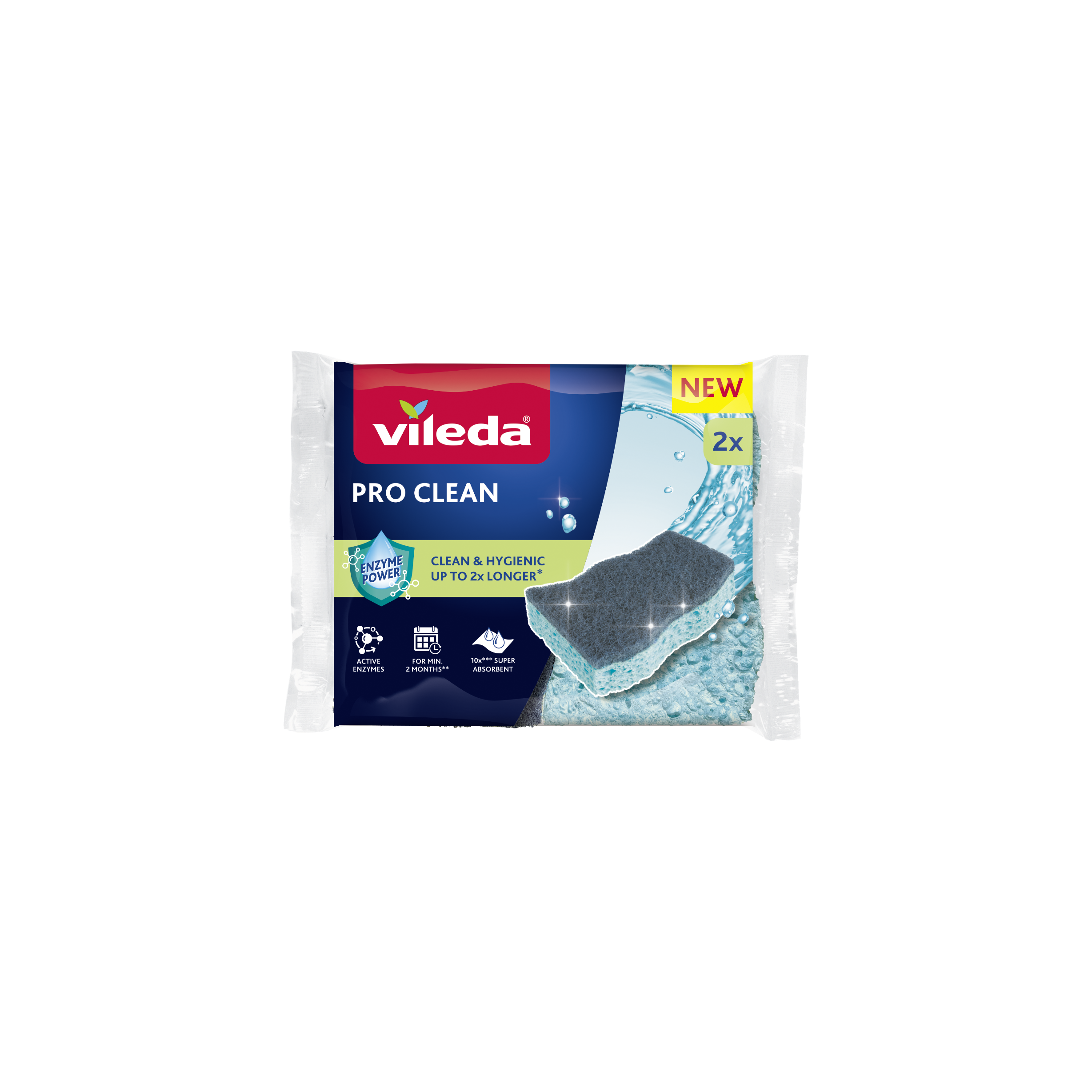 Czystość i higiena do 2 x dłużej!Zmywak Vileda ProClean wykonany jest z wiskozowej gąbki.- zawiera naturalne enzymy, które rozkładają cząsteczki zabrudzeń, dzięki czemu zmywak ProClean jest czysty i higieniczny na dłużej