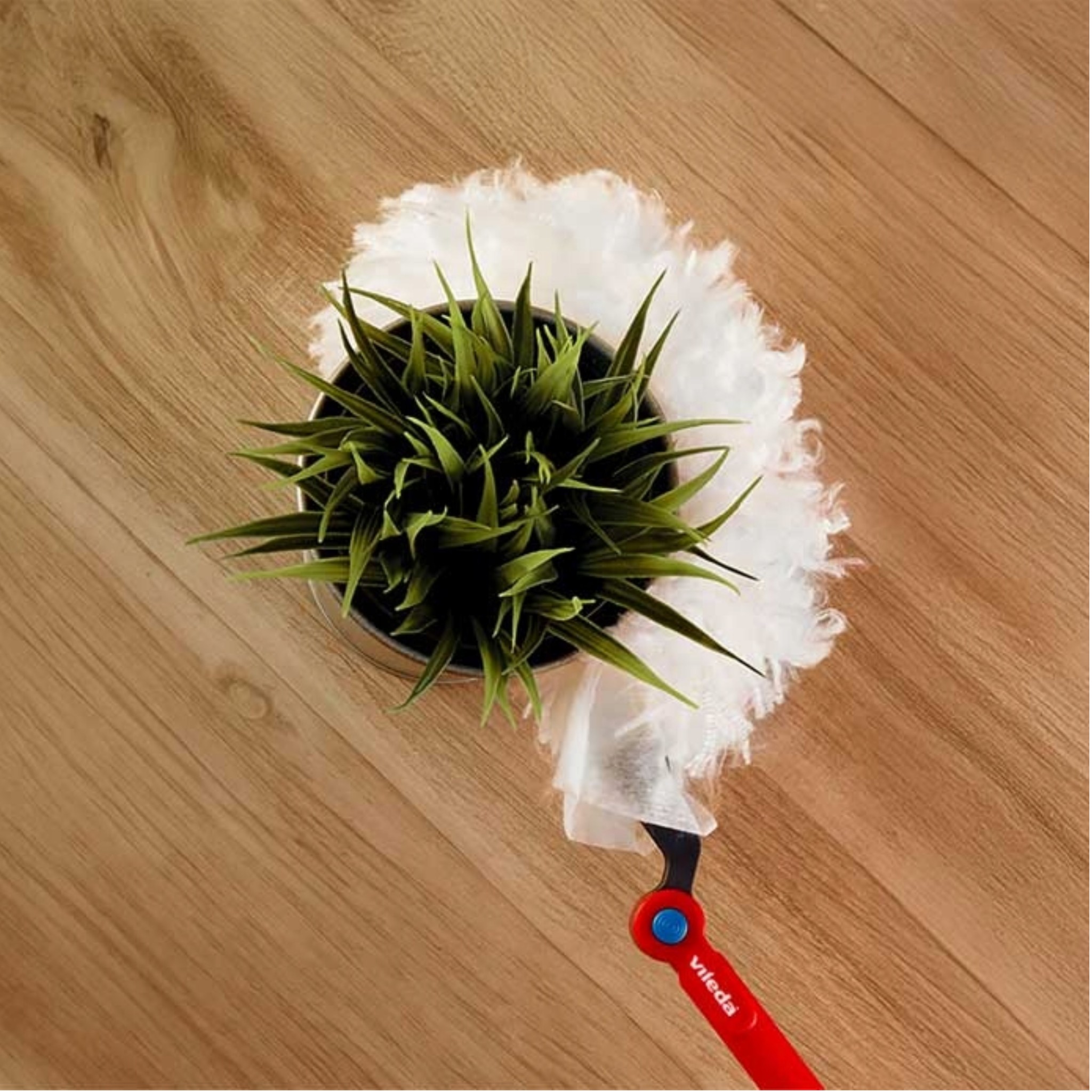 Miotełka do kurzu Vileda Flex & Catch z długą rączką dzięki opatentowanej konstrukcji zatrzymuje nawet 3 razy więcej kurzu niż tradycyjne miotełki, zapewniając dokładne i skuteczne sprzątanie w każdym zakamarku.Koniec z przesuwaniem kurzu z miejsca na miejsce – teraz pozbędziesz się go całkowicie ze wszystkich przestrzeni w domu.