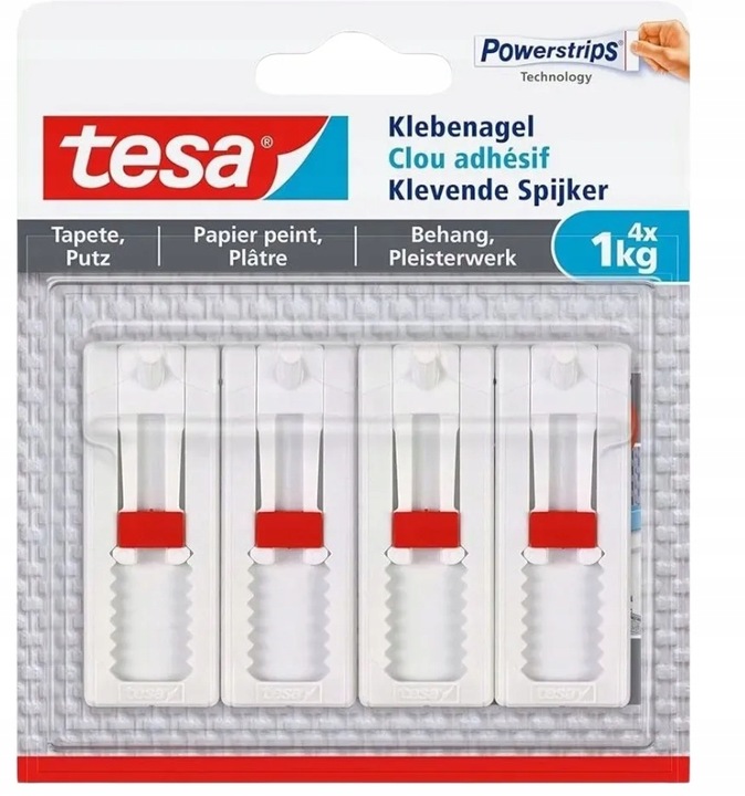 TESA Gwóźdź samoprzylepny do tapety i tynku - białe haczyki na klej 1kg x4
