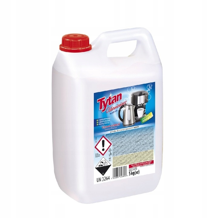 Odkamieniacz w płynie Tytan skutecznie usuwa osad z kamienia z urzadzeń drobnego AGD. Preparat przeznaczony jest do urzadzeń takich jak: czajniki tradycyjne, elektryczne, a w szczególności do ekspresów przepływowych i ciśnieniowych.