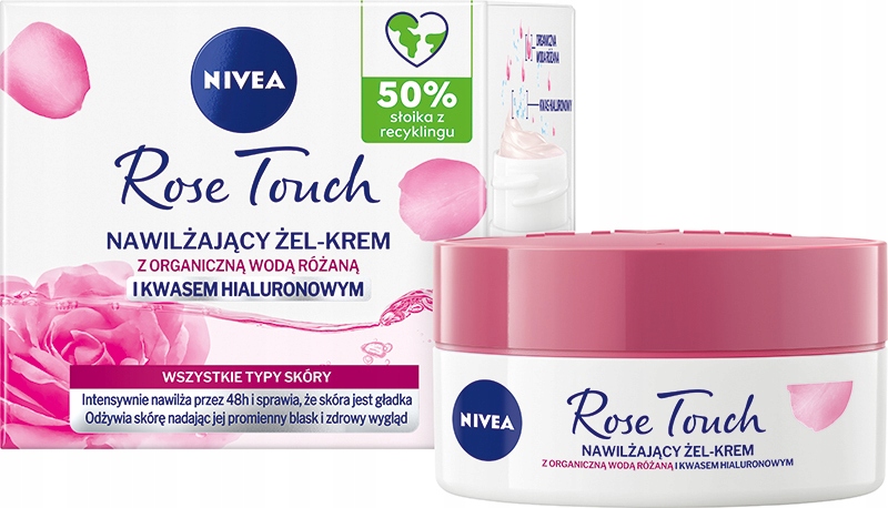 - Krem do cery NIVEA Rose Touch zapewnia 48h nawilżenia