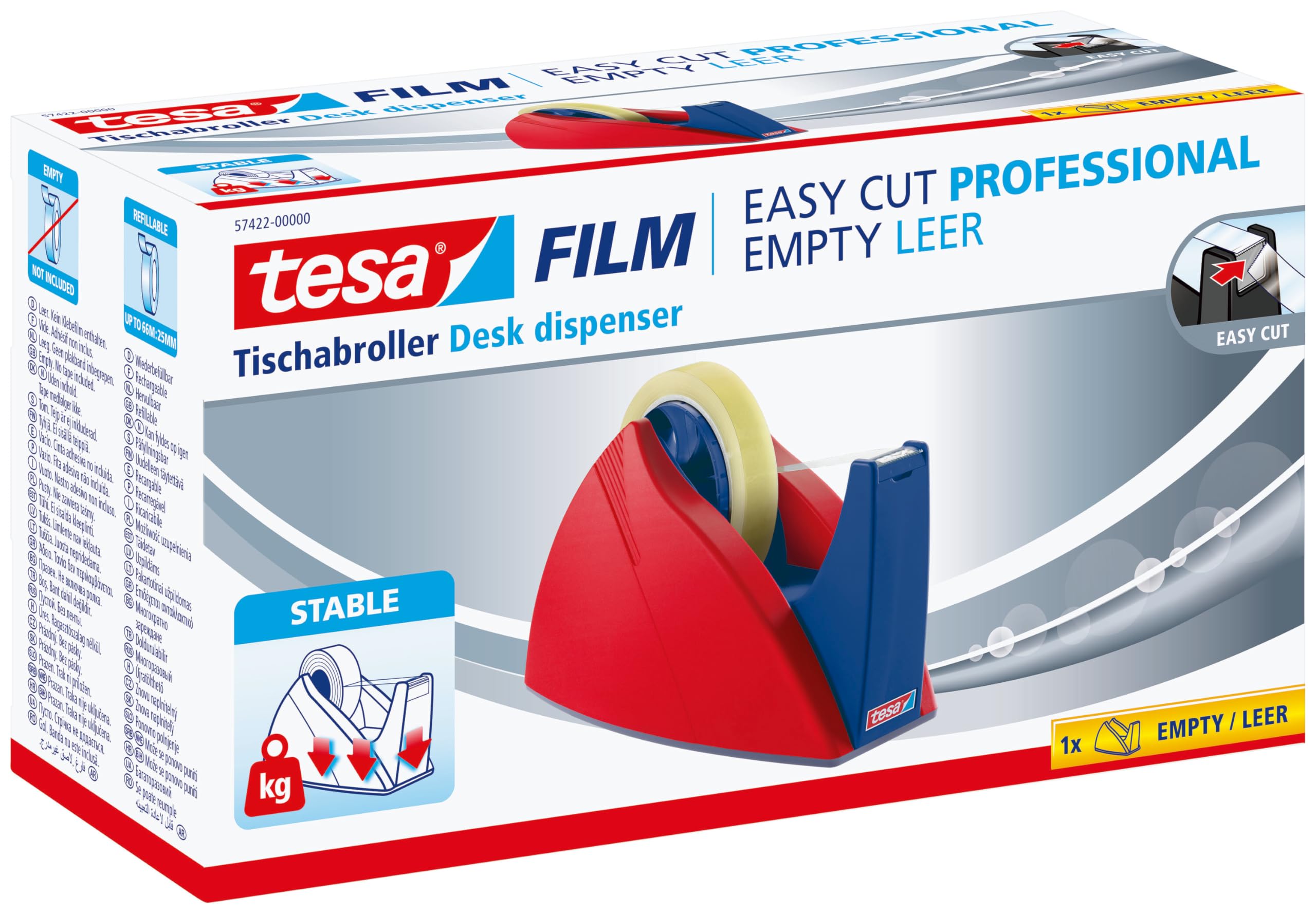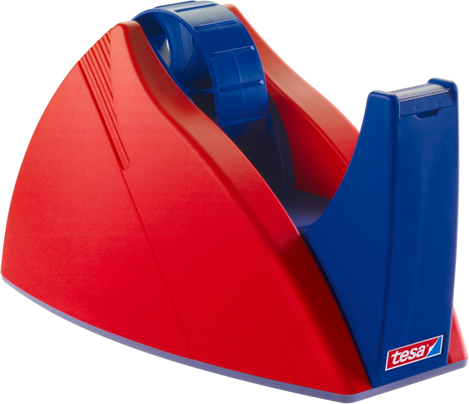tesa FILM - Easy Cut, łatwy do cięcia dozownik na biurko do taśmy klejącej o wymiarach 66 m x 25 mm, do użytku w domu i biurze - czerwony/niebieski