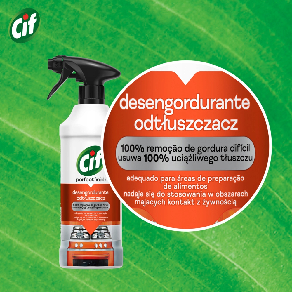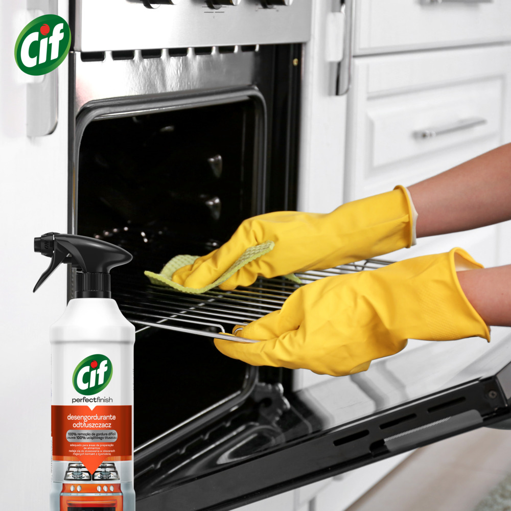 Specjalistyczny Spray Cif Perfect Finish Odtłuszczacz usuwa 100% uporczywego tłuszczu z piekarnika i grilla, pozostawiając lśniąco czyste powierzchnie.