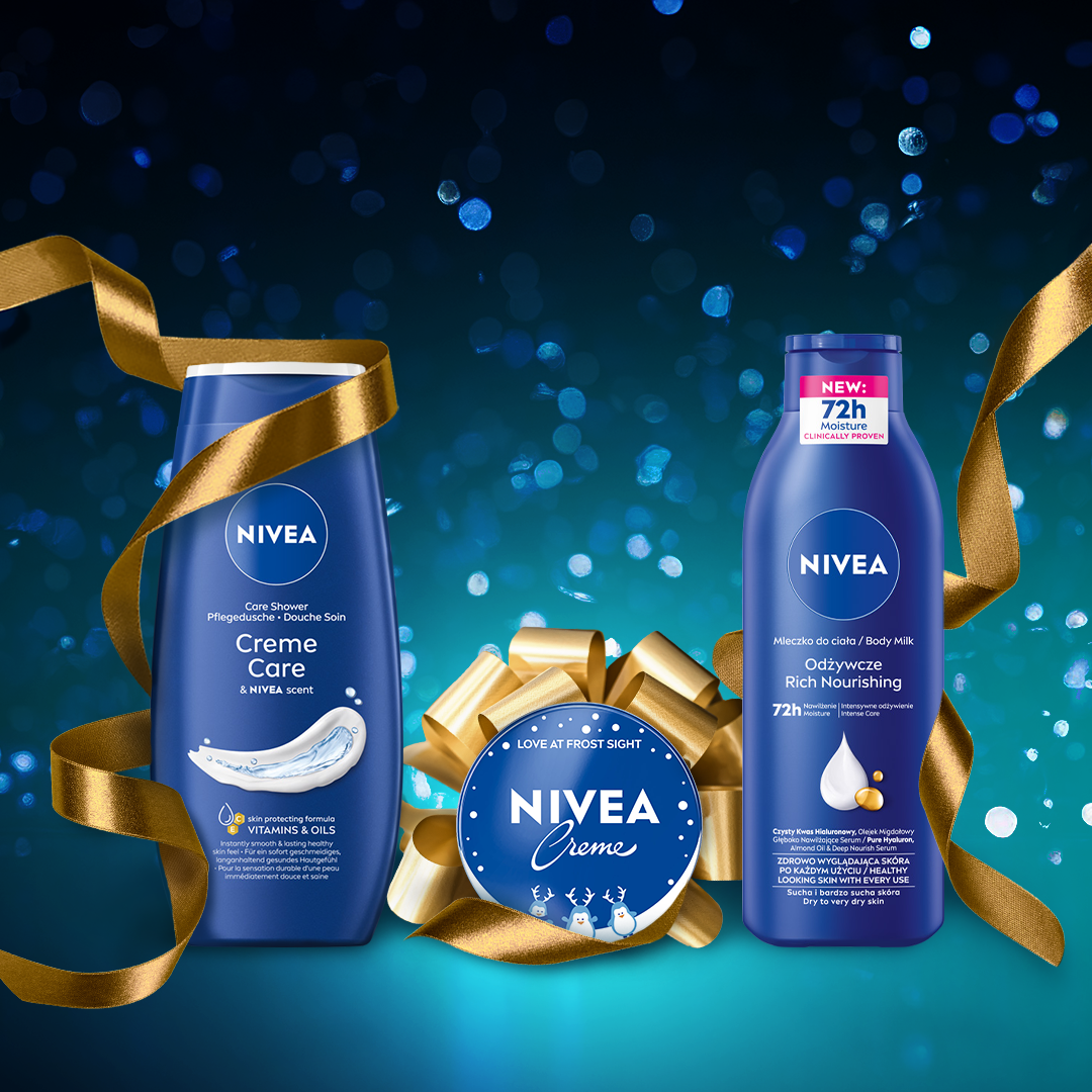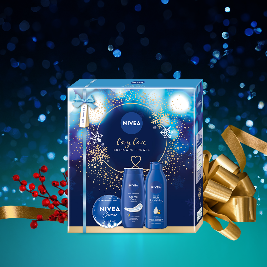 Pokaż, że zasługuje na chwilę tylko dla siebie, podarowując jej zestaw kosmetyków do pielęgnacji NIVEA COZY CARE. Zestaw zawiera Odżywcze mleczko do ciała, które zadba o nawilżenie i regenerację nawet bardzo suchej skóry, Pielęgnujący żel pod prysznic, który nadaje Twojej skórze zdrowy wygląd po każdym użyciu, a także kultowy Krem, który zapewnia skórze pielęgnację, ochronę i nawilżenie, pozostawiając ją gładką i zadbaną. To idealny zestaw kosmetyków do pielęgnacji skóry na co dzień - sprawdzi się dla kobiet w każdym wieku, a eleganckie opakowanie świetnie wygląda pod choinką. Postaw na prezent i pielęgnację w jednym – od NIVEA. Tolerancja dla skóry potwierdzona dermatologicznie.