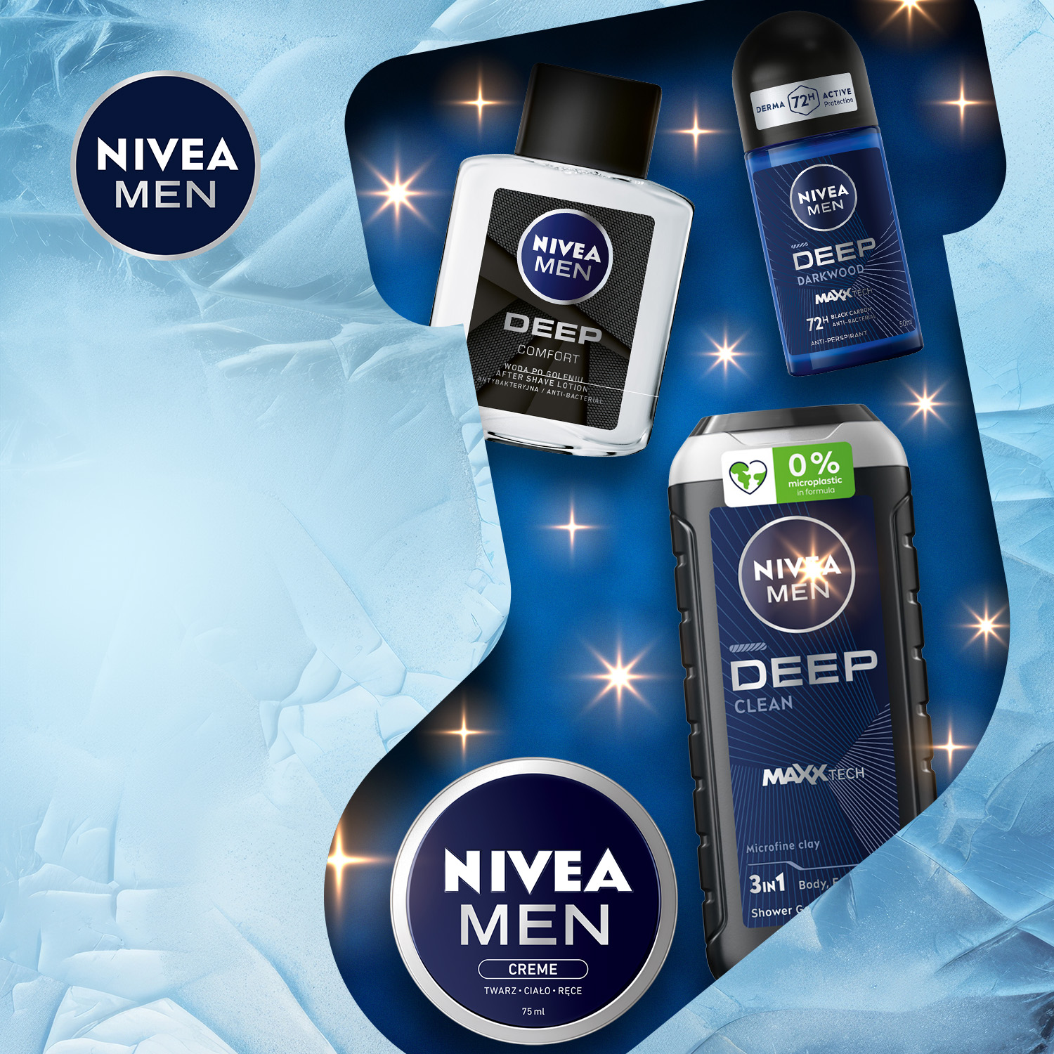 - NIVEA MEN DEEP Comfort antybakteryjna woda po goleniu: wspomaga regenerację podrażnionej skóry po goleniu, jednocześnie pozostawiając uczucie czystości.