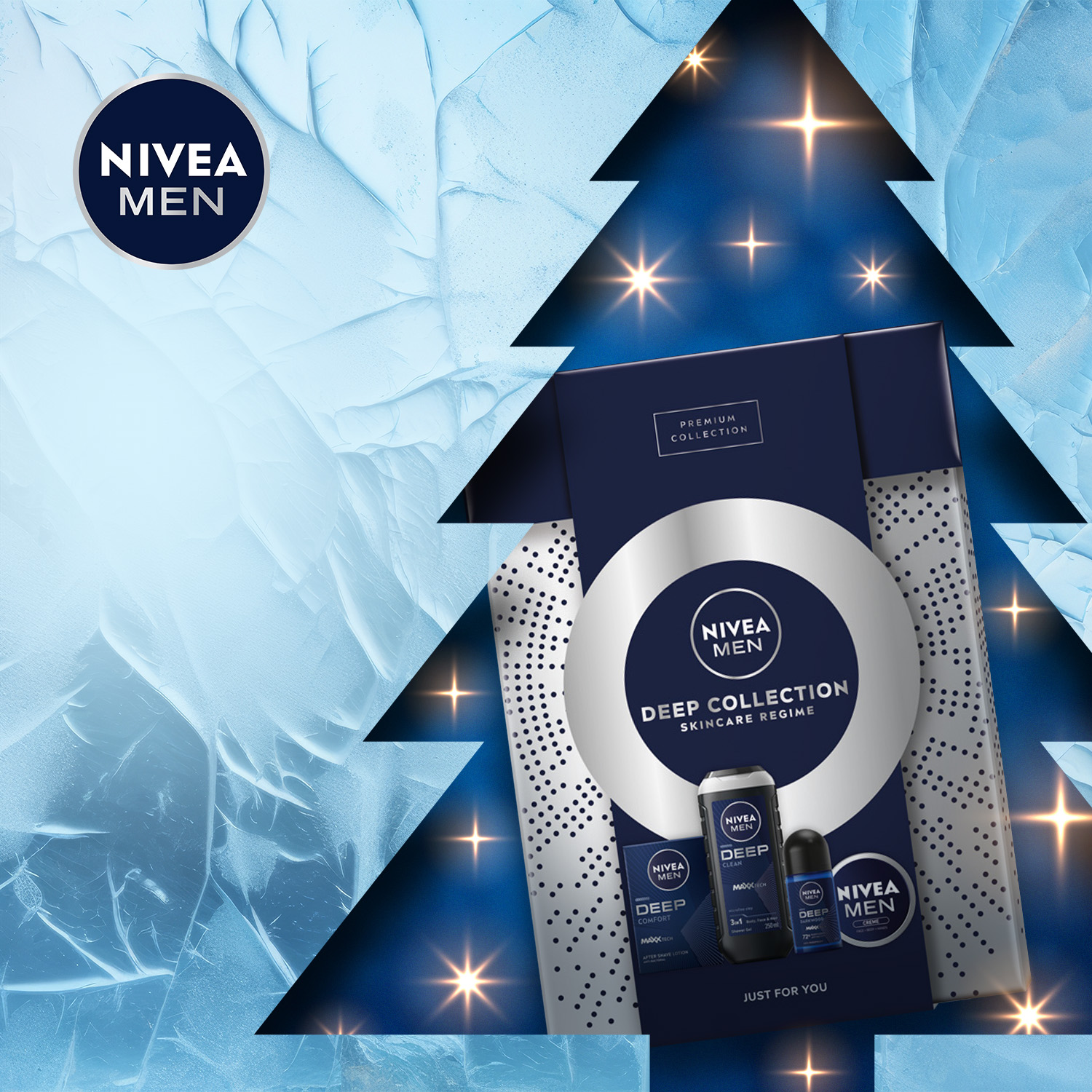 Kosmetyki codziennego użytku stanowią duże wsparcie w pielęgnacji skóry, dzięki czemu stanowią trafiony pomysł na podarunek. Wygodne, eleganckie opakowanie jest gotowe do wręczenia ukochanej osobie. Zestaw dla mężczyzn NIVEA DEEP COLLECTION zawiera kosmetyki z linii NIVEA MEN Deep o głębokich, męskich zapachach, stworzone z myślą o pielęgnacji i ochronie skóry. Antybakteryjne formuły z aktywnym węglem chronią skórę i głęboko ją oczyszczają, zapewniając długotrwałe uczucie świeżości i czystości.