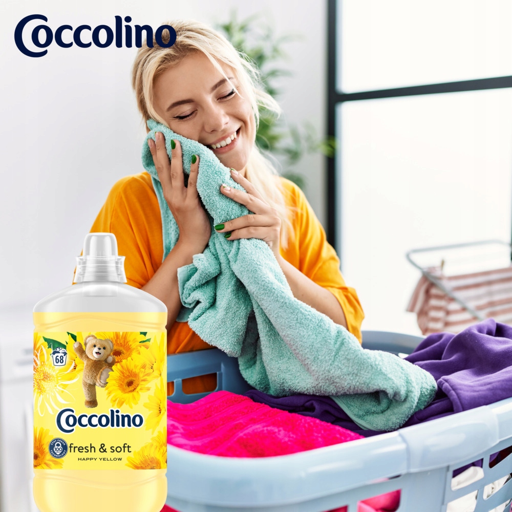 Płyn do płukania tkanin Coccolino Fresh&Soft Happy Yellow zapewnia tkaninom długotrwałą miękkość i świeżość.