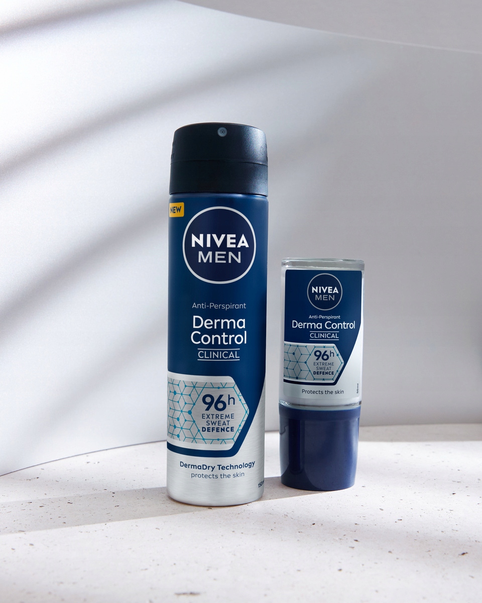 Zatrzymaj głos, który mówi, że nie jesteś w stanie i poczuj pełną kontrolę z nowym antyperspirantem w kulce NIVEA MEN Derma Control. Zapewnia ekstremalną, 96-godzinną ochronę przed potem, Derma Control chroni przed wilgocią i zapobiega powstawaniu nieprzyjemnych zapachów. Formuła z technologią Derma Dry chroni skórę, zapewniając uczucie miękkiej i gładkiej skóry bez podrażnień. Zawiera mleczan, który wspomaga naturalne nawilżanie skóry