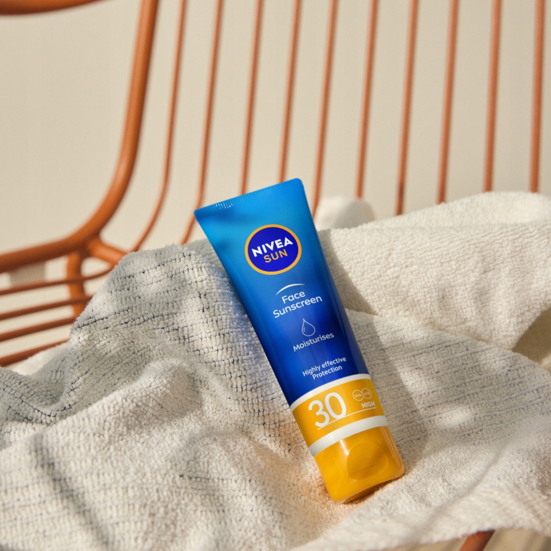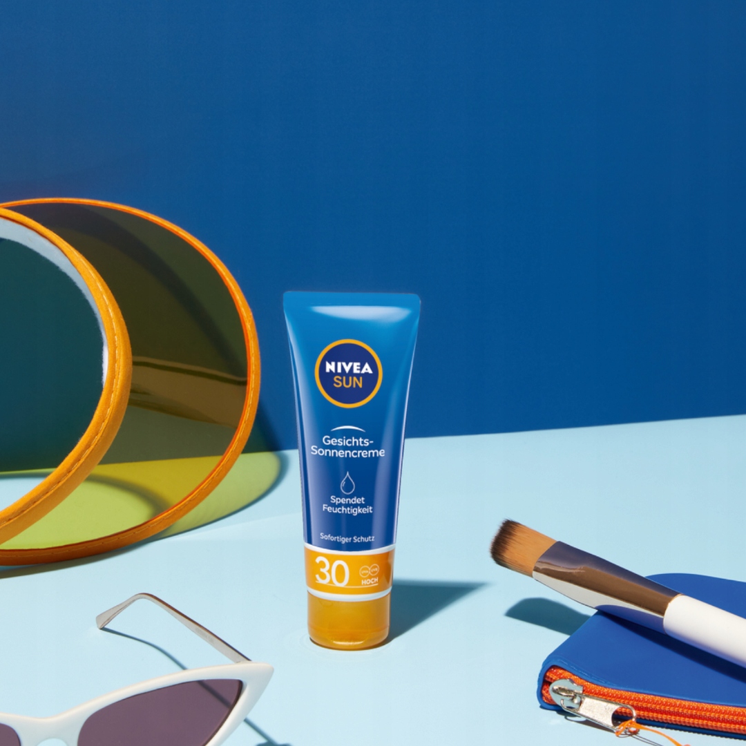 Krem nawilżający do twarzy NIVEA SUN został opracowany specjalnie z myślą o delikatnej skórze twarzy. Zapewnia niezawodną i natychmiastową ochronę przed promieniowaniem UVA/UVB. Nawilżający krem przeciwsłoneczny do twarzy, szyi i dekoltu zapewnia uczucie jedwabiście gładkiej skóry. Formuła zatwierdzona okulistycznie (przyjazna dla oczu). Tolerancja dla skóry potwierdzona dermatologicznie. NIVEA SUN ma na celu zminimalizowanie wpływu na środowisko. Formuła jest w 74% biodegradowalna i jest łagodna dla oceanów, ponieważ nie zawiera filtrów UV Octinoxate, Oxybenzone i Octocrylene oraz mikroplastiku. Tubka i nakrętka są wykonane w 50% z plastiku pochodzącego z recyklingu.