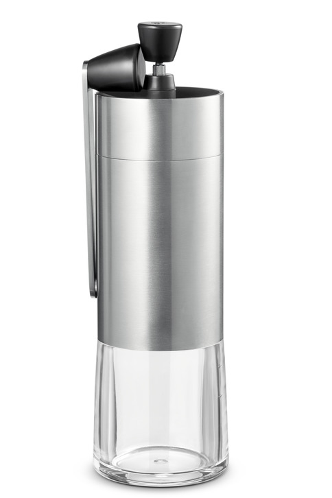 Materiał: stal nierdzewna (korpus, korbka), tworzywo sztuczne (uchwyt), szkło akrylowe (pojemnik), ceramika (żarna)