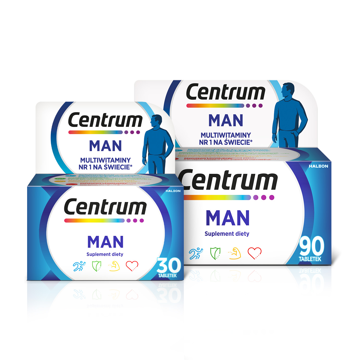 Suplement diety Centrum Man to witaminy i minerały stworzone specjalnie dla mężczyzn. Zastanawiasz się czy warto brać witaminy Centrum? Jaki kompleks witamin dla mężczyzny? Centrum Man to dobre witaminy zawierające w swoim składzie witaminy D, A i C, miedź, selen i cynk, które pomagają w prawidłowym funkcjonowaniu układu odpornościowego. Zawiera magnez, który pomaga w prawidłowym funkcjonowaniu mięśnia sercowego. Zawiera odpowiednio dobrane poziomy wapnia, magnezu i witaminy D, które pomagają w prawidłowym funkcjonowaniu mięśni. Mężczyźni posiadają przeciętnie większą masę mięśniową oraz większe zapotrzebowanie na energię niż kobiety. Odpowiednio dobrany poziom magnezu pomaga w prawidłowym funkcjonowaniu mięśni.