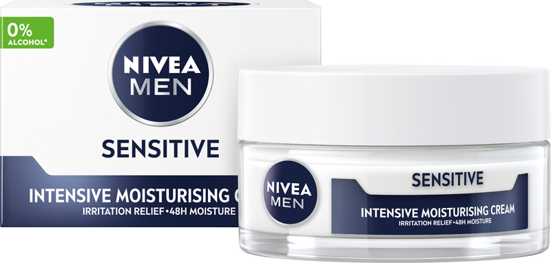 NIVEA MEN SENSITIVE Intensywnie nawilżający krem do twarzy dla mężczyzn dla skóry wrażliwej dający natychmiastową ulgę od podrażnień. Bezalkoholowa*, lekka, nietłusta i wygładzająca formuła kremu szybko się wchłania w skórę. Zawiera rumianek i witaminę E, które intensywnie nawilżają (nawet do 48 godzin) i łagodzą skórę. Dodatkowo krem daje całodniową ulgę od 5 oznak podrażnionej skóry: pieczenia, zaczerwienienia, swędzenia oraz uczucia napięcia i suchości skóry. Krem można używać bezpośrednio po goleniu. Tolerancja dla skóry potwierdzona dermatologicznie wśród mężczyzn o wrażliwej skórze twarzy. NIVEA® - ponad 100 lat doświadczenia w pielęgnacji skóry oraz starannie wyselekcjonowane składniki z zachowaniem najwyższych standardów jakości. *bez alkoholu etylowego- Lekka, nietłusta formuła kremu