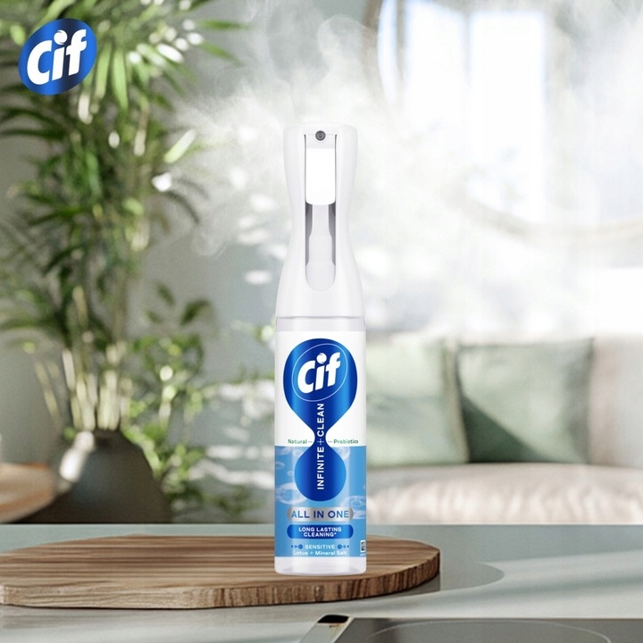 Cif Infinite Clean Sensitive Lotus + Mineral Salt to uniwersalny spray do czyszczenia różnego rodzaju powierzchni i sprzętów w całym domu.FORMUŁA Z NATURALNYMI PROBIOTYKAMI