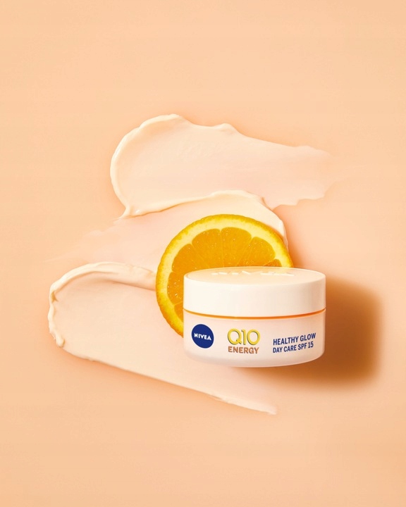 Krem przeciwzmarszczkowy NIVEA Q10 ENERGY ZDROWY BLASK zapewnia Twojej skórze 24 godziny nawilżenia i blasku by Twoja skóra była bardziej promienna i rozświetlona. Wyjątkowa formuła łącząca moc aż 3 antyoksydantów: Witaminy C, Witaminy E i koenzymu Q10 identycznego jak w skórze, redukuje zmarszczki w ciągu dwóch tygodni i jednocześnie ujędrnia skórę. Niweluje oznaki zmęczenia widoczne na skórze, by Twoja skóra była pełna świeżości. Zawarte w kremie filtry UVA / UVB z SPF 15 zapewniają ochronę przed promieniowaniem słonecznym, zapobiegając powstawaniu zmarszczek. Ciesz się natychmiastowym odświeżeniem i gładkością skóry z energetyzującą pielęgnacją NIVEA Q10 ENERGY o zapachu pomarańczy.