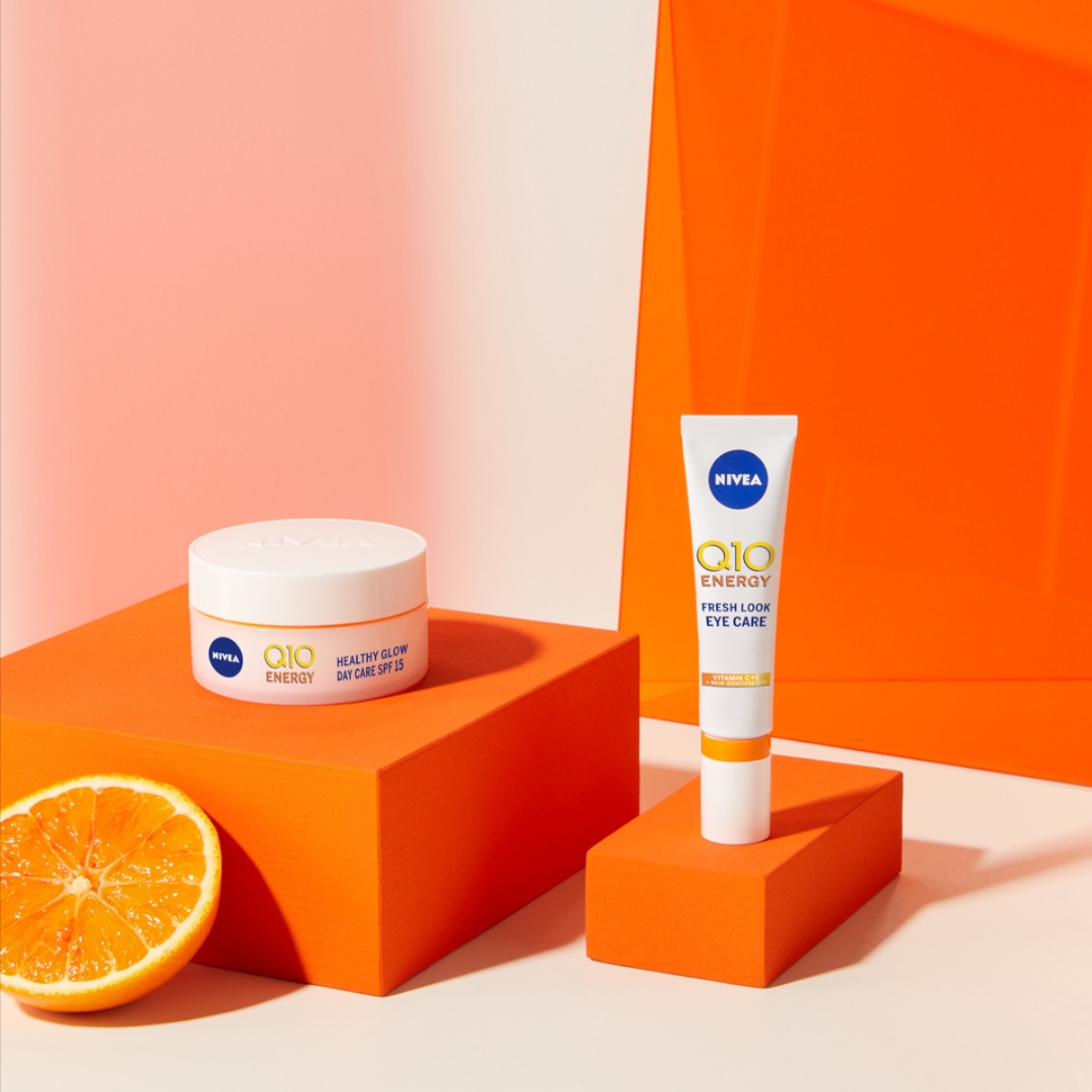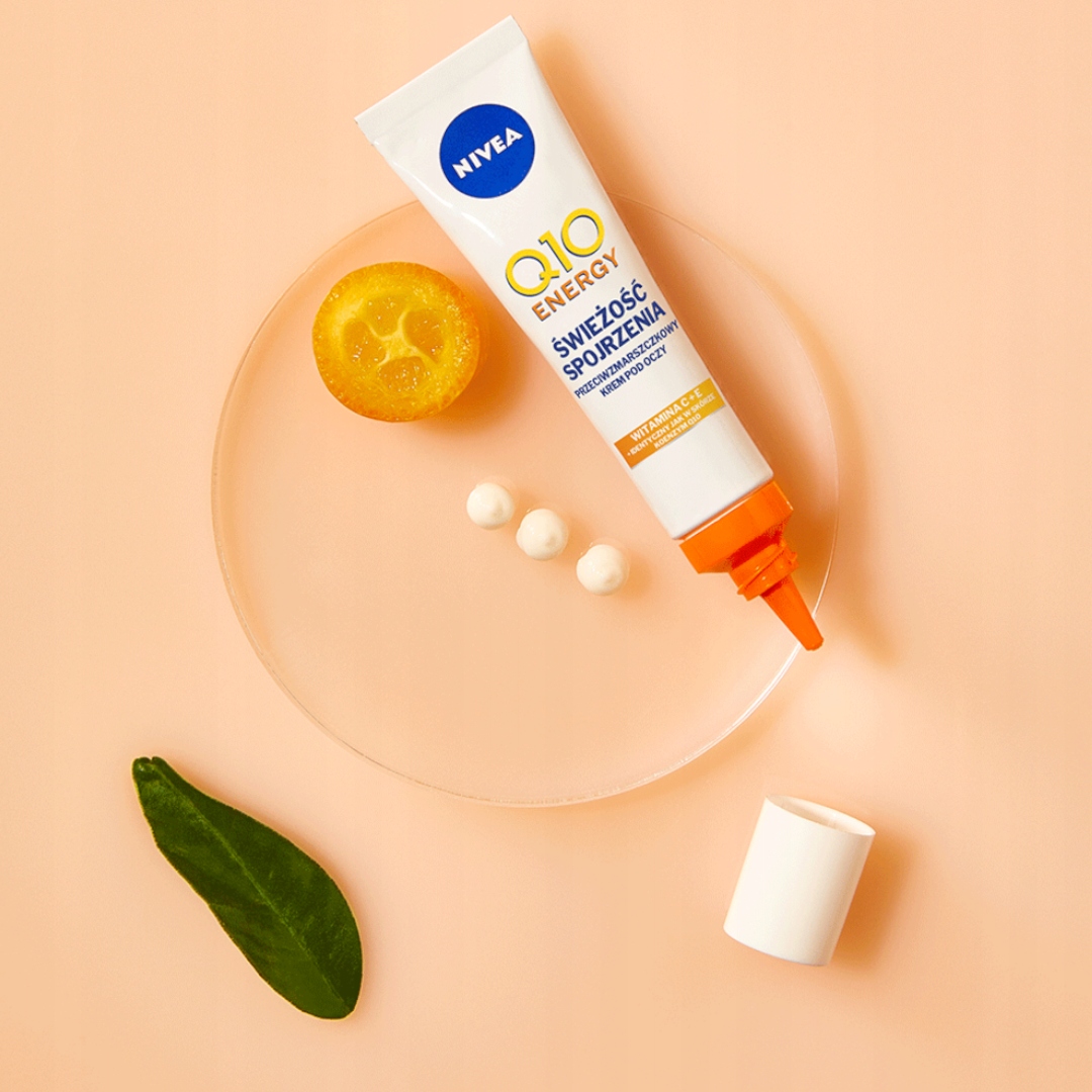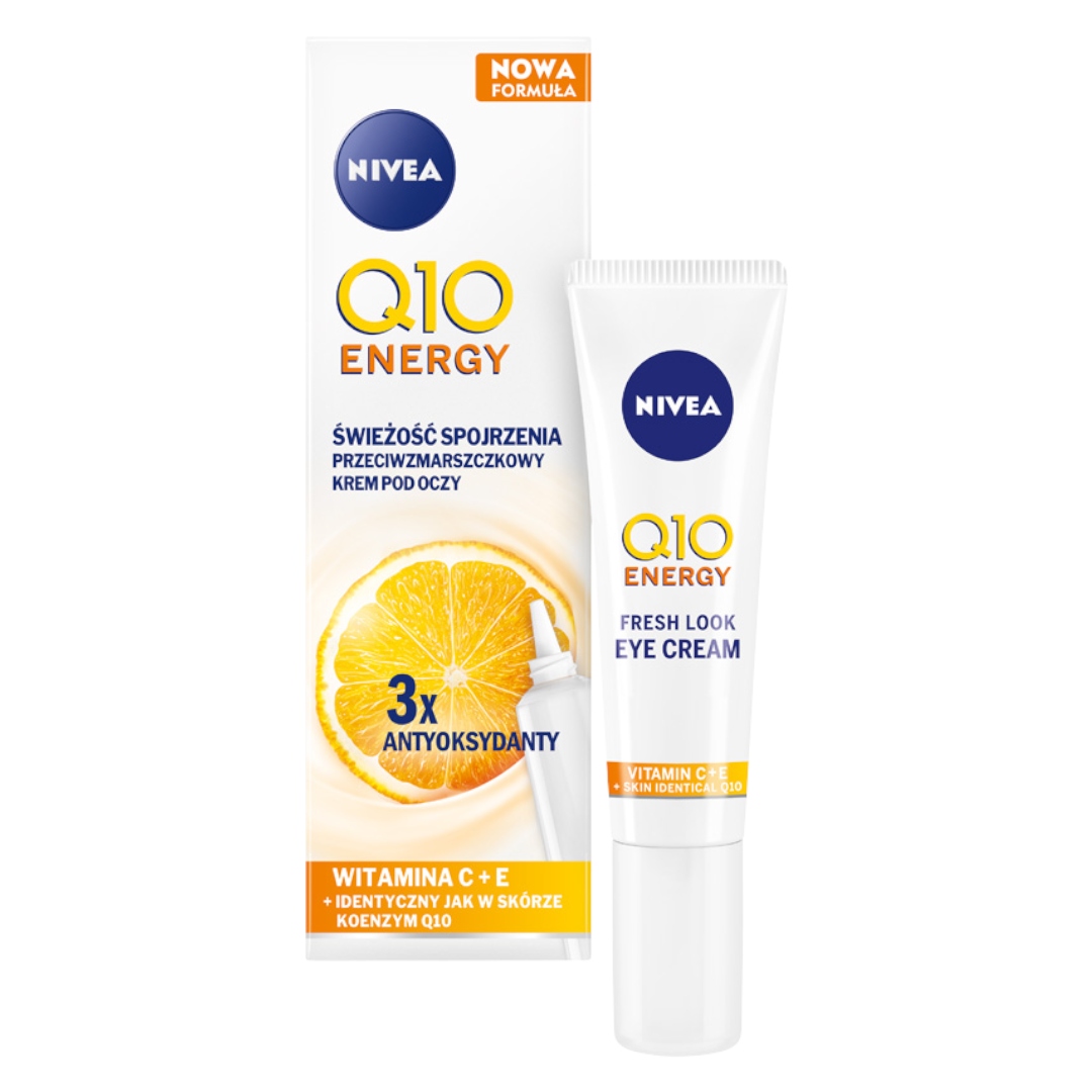 Poznaj NIVEA® Q10 ENERGY ŚWIEŻOŚĆ SPOJRZENIA Przeciwzmarszczkowy krem pod oczy, który wspiera własną zdolność skóry do poprawy metabolizmu energetycznego* i chroni ją przed szkodliwymi dla skóry wolnymi rodnikami.