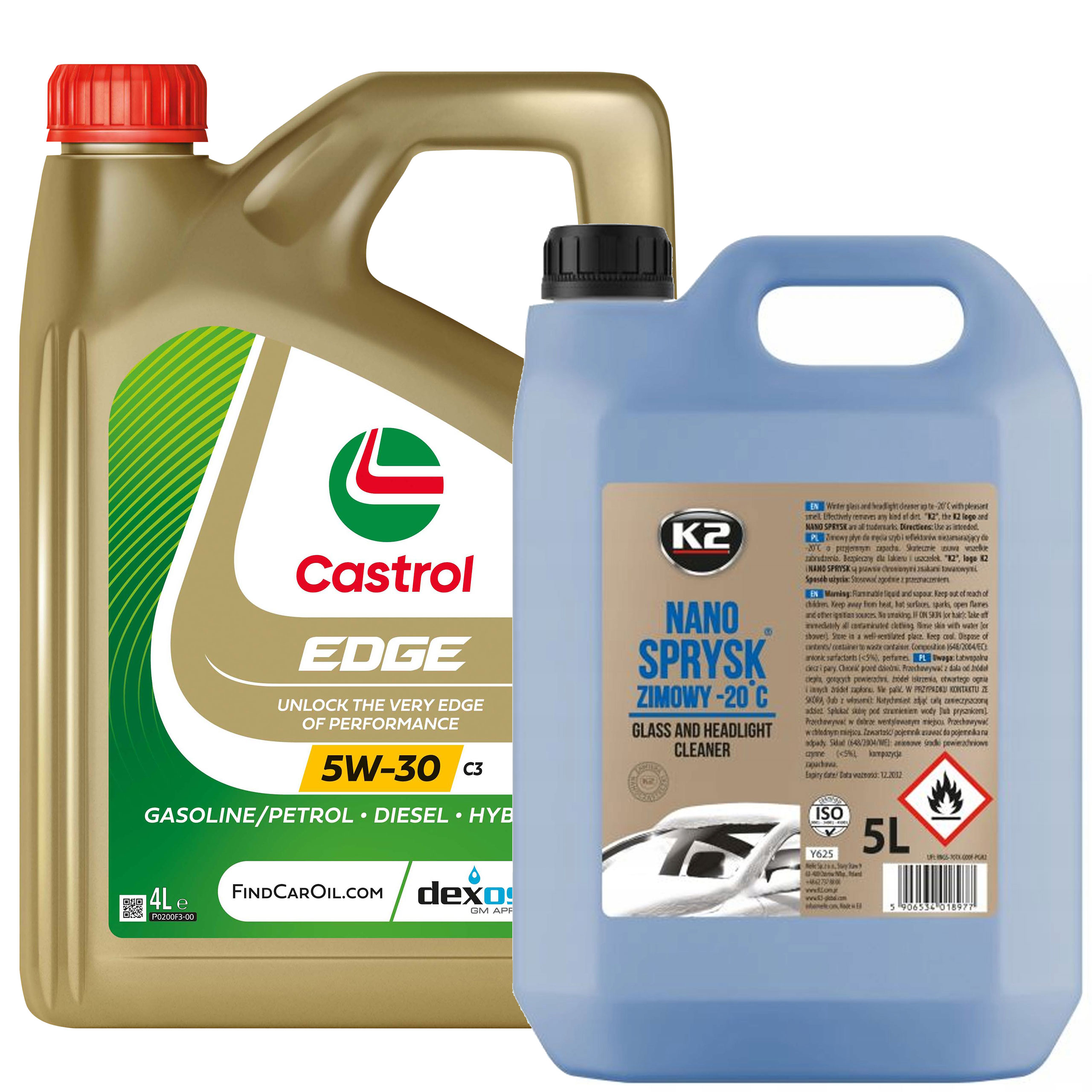 Zestaw Olej Castrol EDGE 5W-30 C3 4L + K2 Nano Sprysk Zimowy 5L