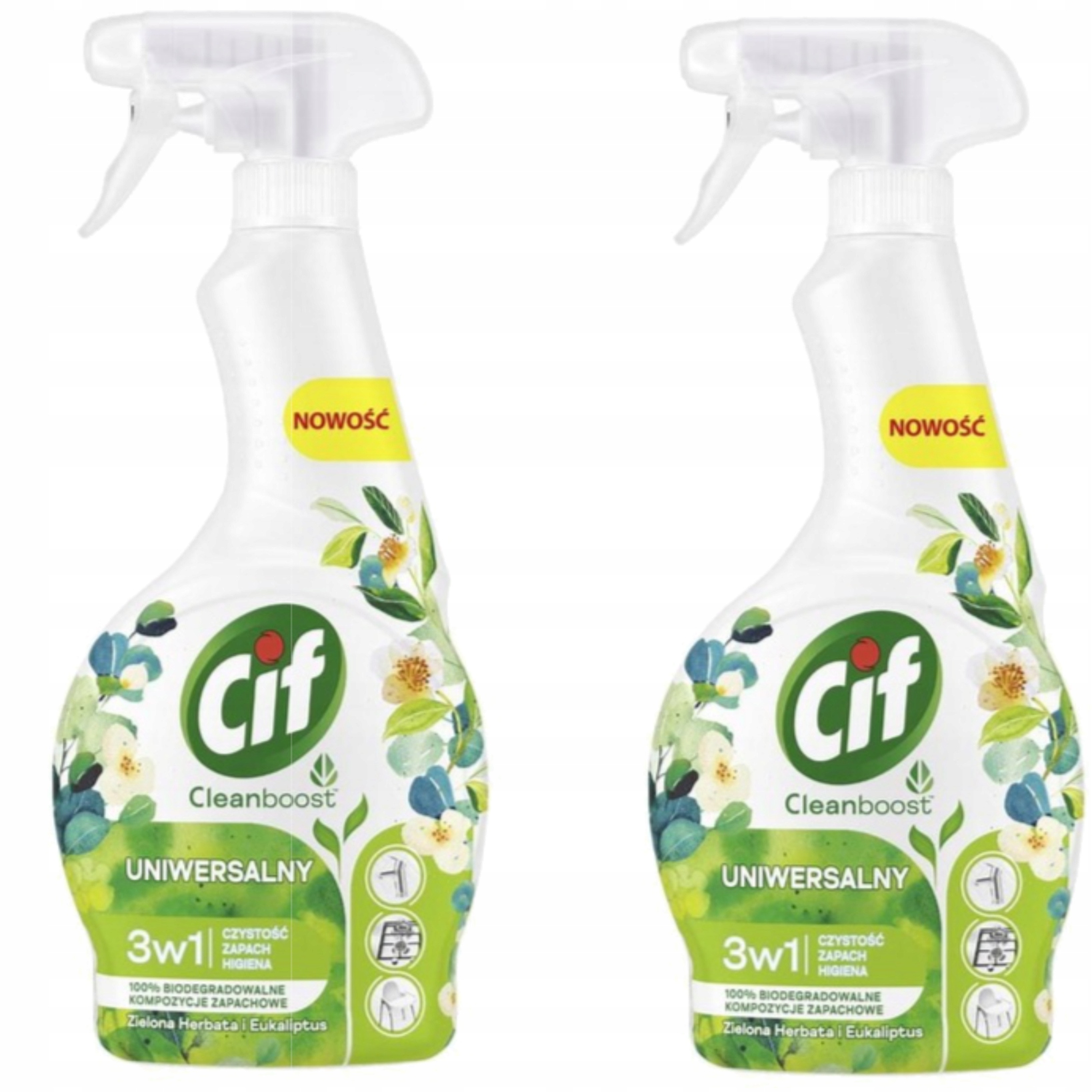 CIF Cleanboost Uniwersalny Płyn 3w1 w Sprayu Zielona Herbata 500 ml 2 szt.