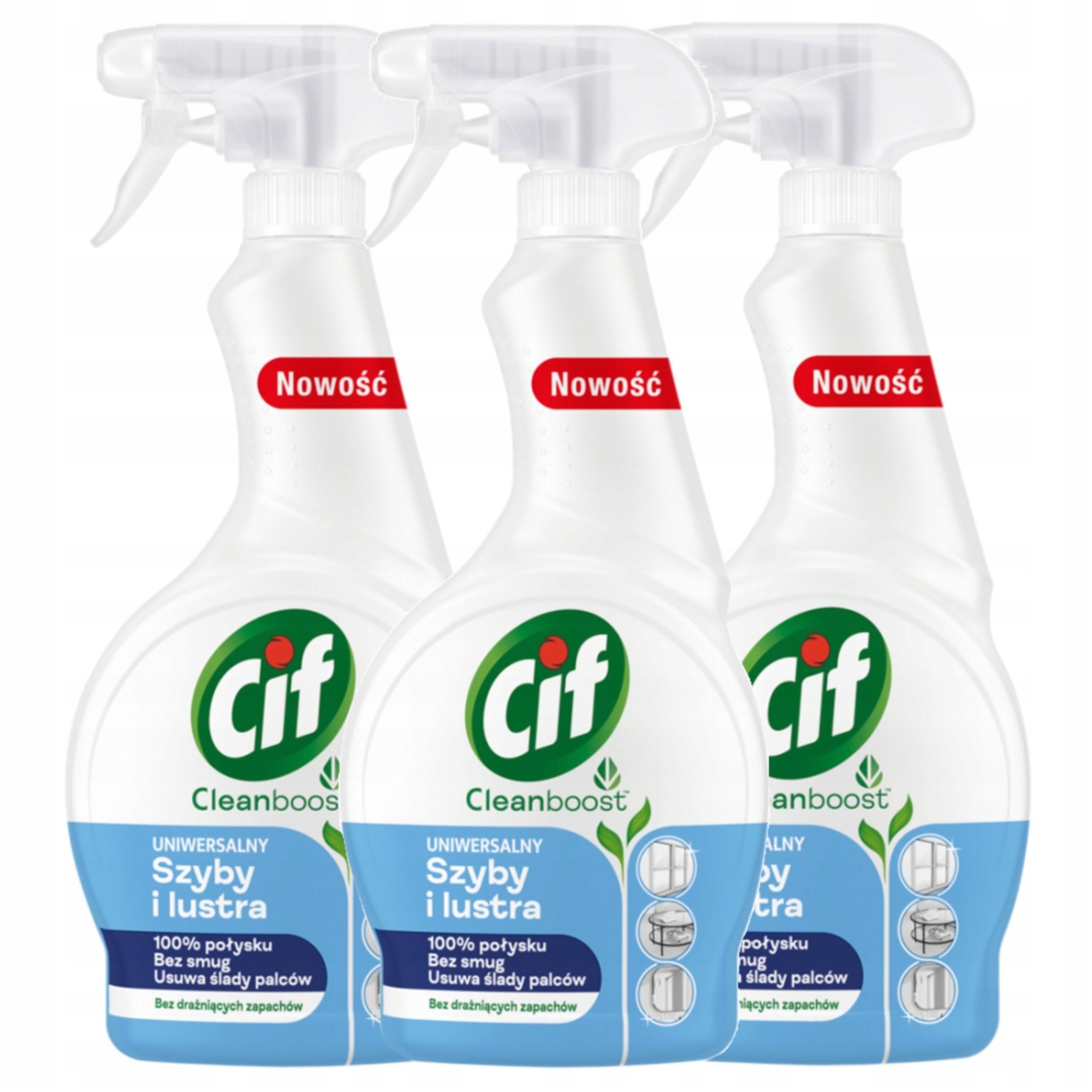 - 3x Cif Cleanboost Spray uniwersalny szyby i lustra 500 ml
