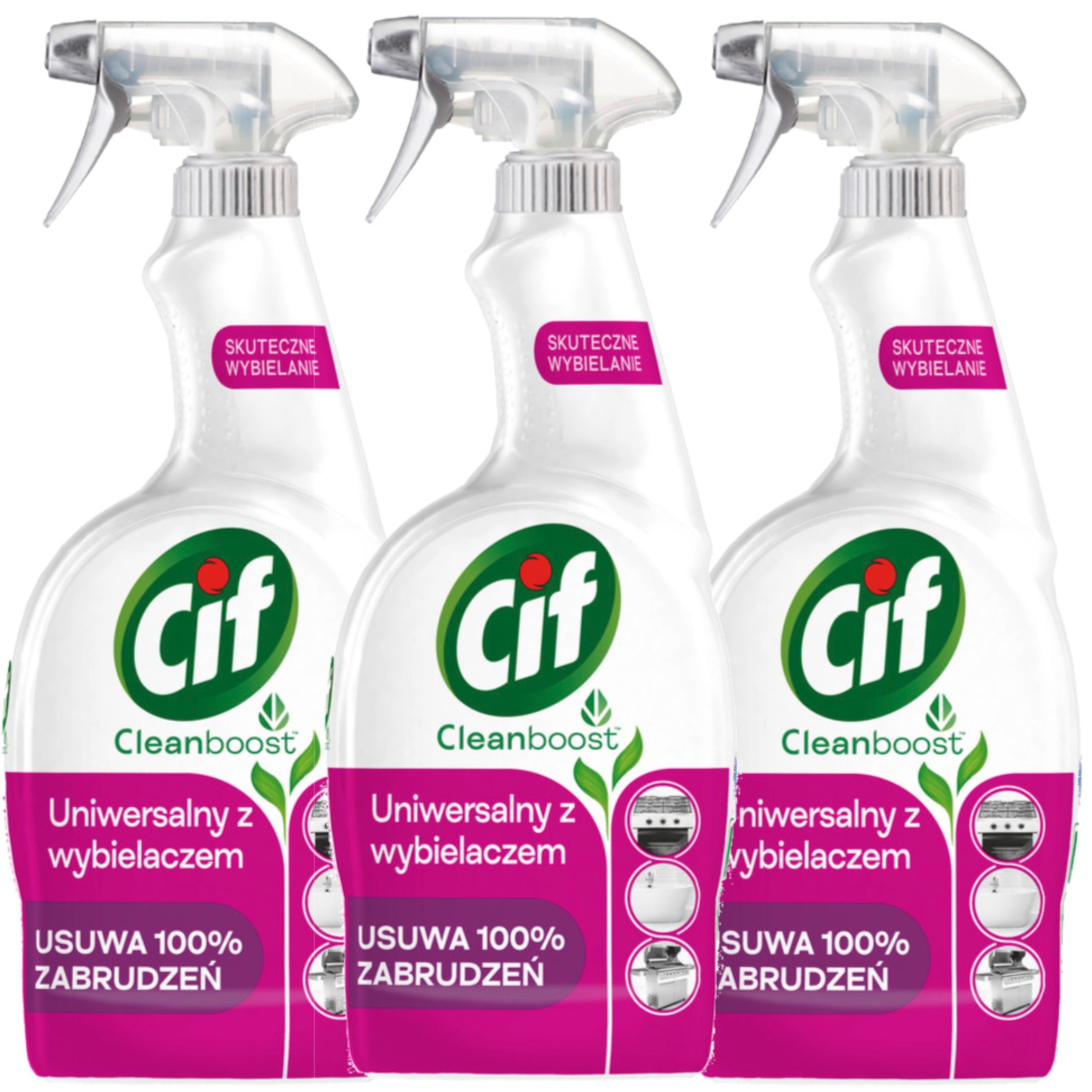 Cif Cleanboost Spray do łazienki i kuchni Uniwersalny z wybielaczem 750 ml x3