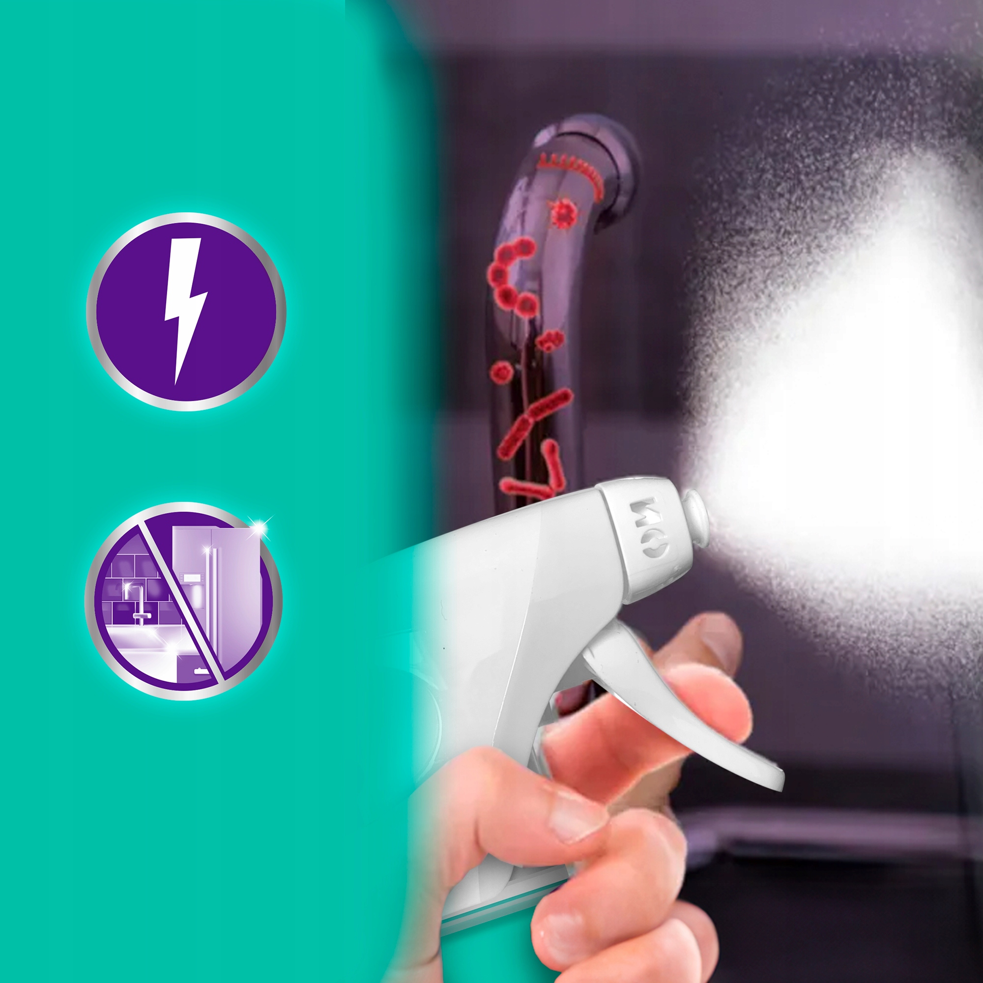Niejonowe środki powierzchniowo czynne oraz eter skutecznie eliminują brud i trudne do usunięcia plamy na każdej powierzchni w Twoim domu. Razem z Cillit Bang Expert Czystość i Dezynfekcja sprawisz, że sprzątanie będzie szybsze i mniej męczące. Przed użyciem zawsze upewnij się, że produkt jest kompatybilny z daną powierzchnią*.*Nie stosuj na: Tekstyliach, drewnie, dywanach, mosiądzu, miedzi. W przypadku kontaktu z tymi powierzchniami natychmiast spłukać wodą. Długotrwały kontakt z metalem, starą porcelaną, laminowanym plastikiem może spowodować przebarwienia. Zawsze należy przeprowadzić test w niewidocznym miejscu, aby upewnić się, że produkt jest kompatybilny z daną powierzchnią.
