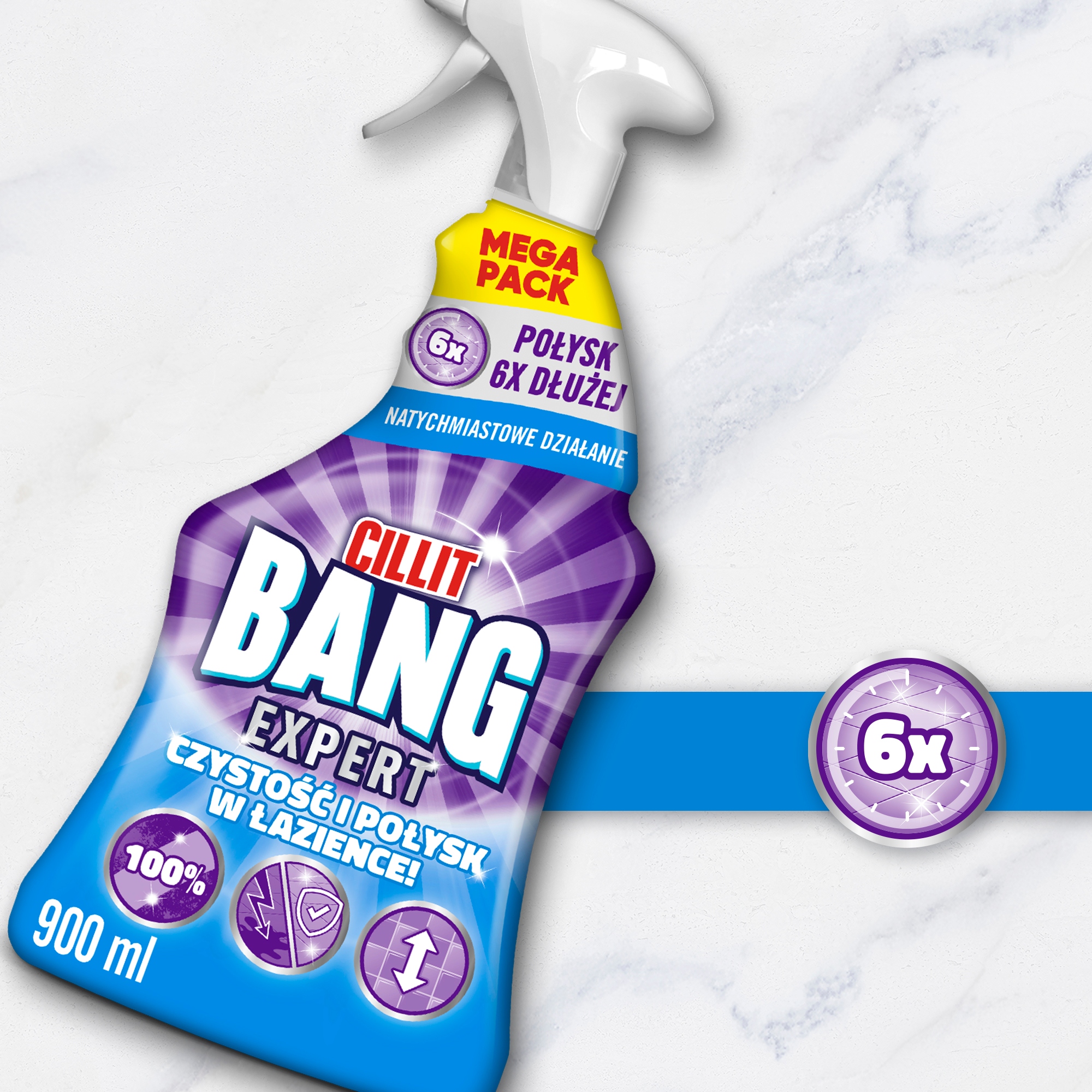 Dzięki swojej unikalnej formule Cillit Bang Expert szybko i skutecznie eliminuje nawet najbardziej oporne zabrudzenia*. Jeśli masz problem z osadem na ściankach prysznica, zabrudzeniami na bateriach łazienkowych czy kamieniem na głowicy prysznicowej, ten produkt jest idealnym rozwiązaniem. Jego silne działanie sprawia, że sprzątanie staje się łatwiejsze, a efekty widoczne od razu. Wybierając Cillit Bang Expert Czystość i połysk w łazience, zyskujesz czystość, która nie wymaga wysiłku!*Czas kontaktu poniżej 60 sekund. Na podstawie przeprowadzonych badań.