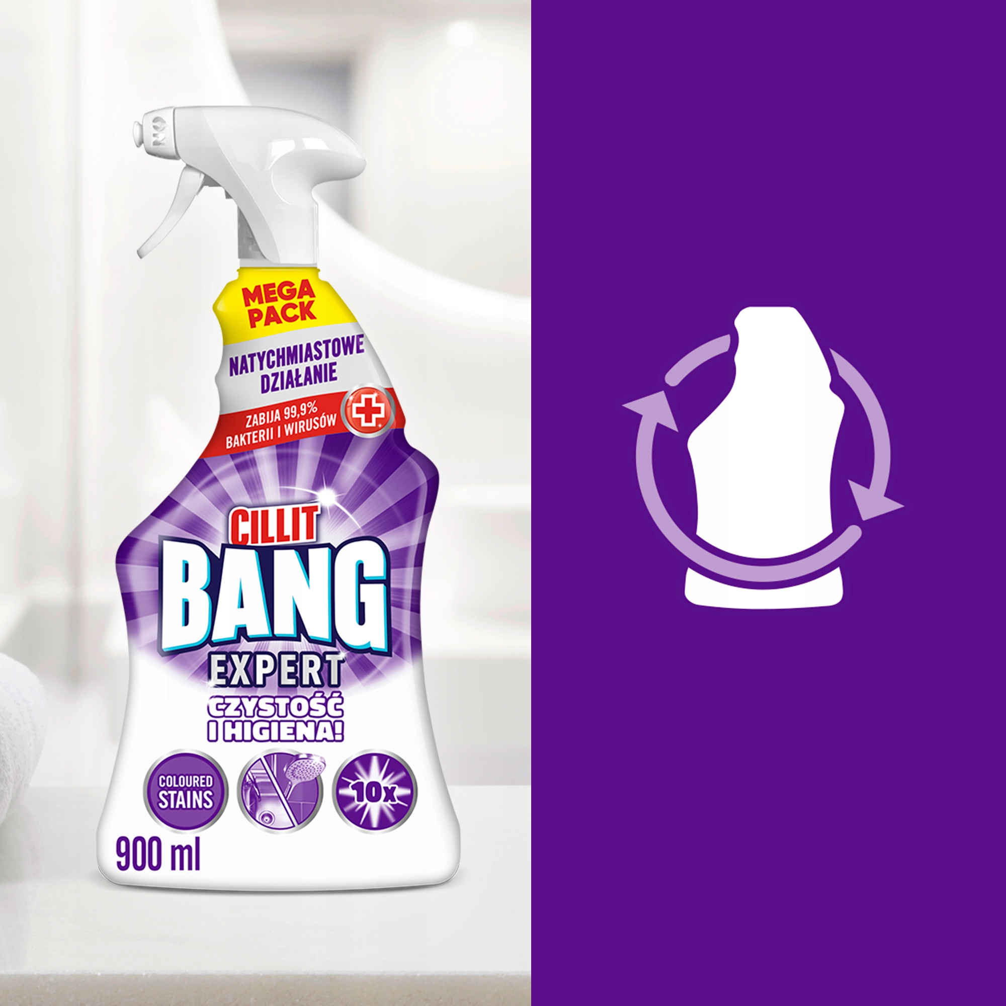 Butelki Cillit Bang Expert zawierają aż 75% plastiku pochodzącego z recyklingu, co stanowi część wkładu w ochronę środowiska. Wybierając produkty Cillit Bang, nie tylko dbasz o czystość swojego domu, ale również o planetę.