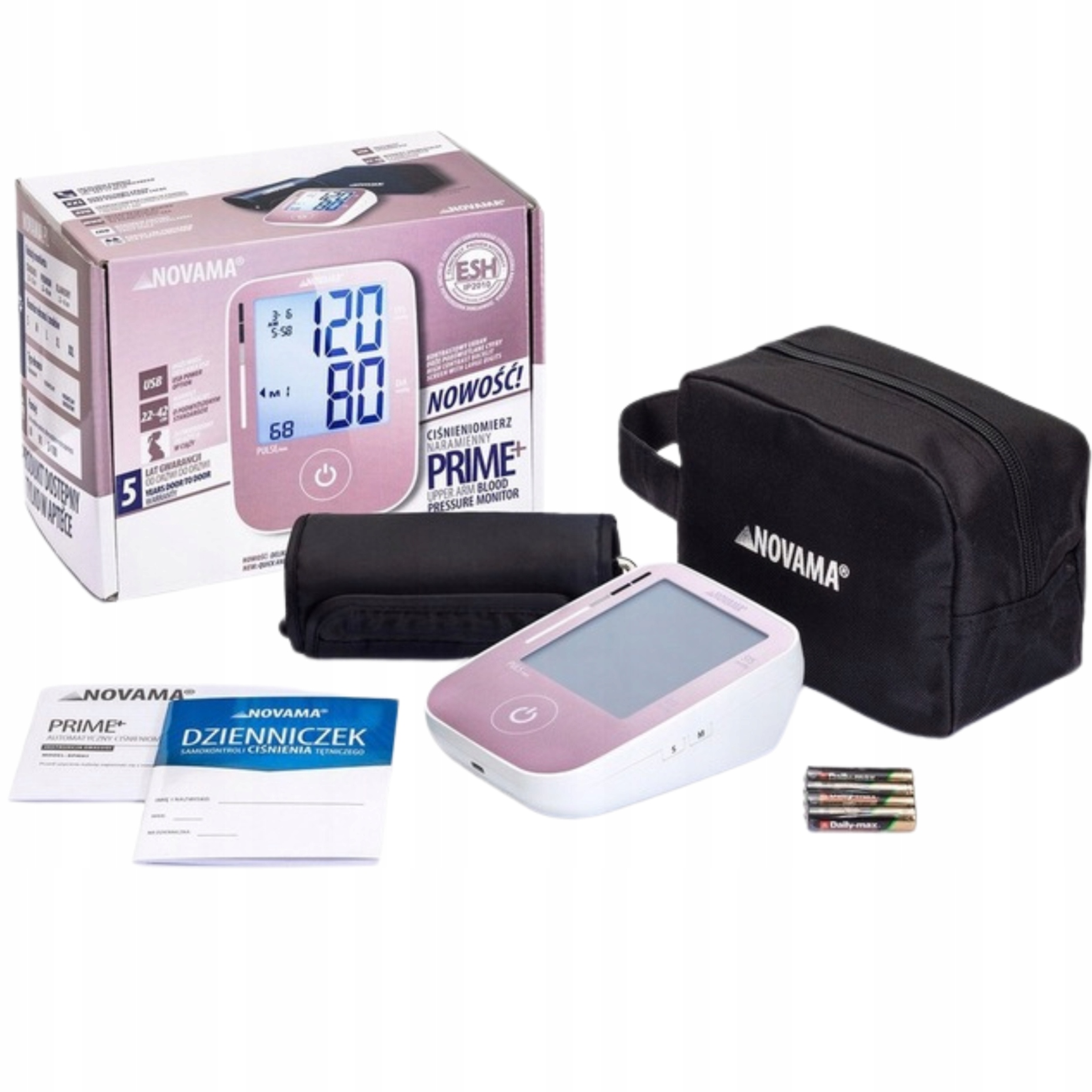 CIŚNIENIOMIERZ NARAMIENNY NOVAMA PRIME PINK ZASILACZ DOKŁADNOŚĆ ESH ARYTMIA