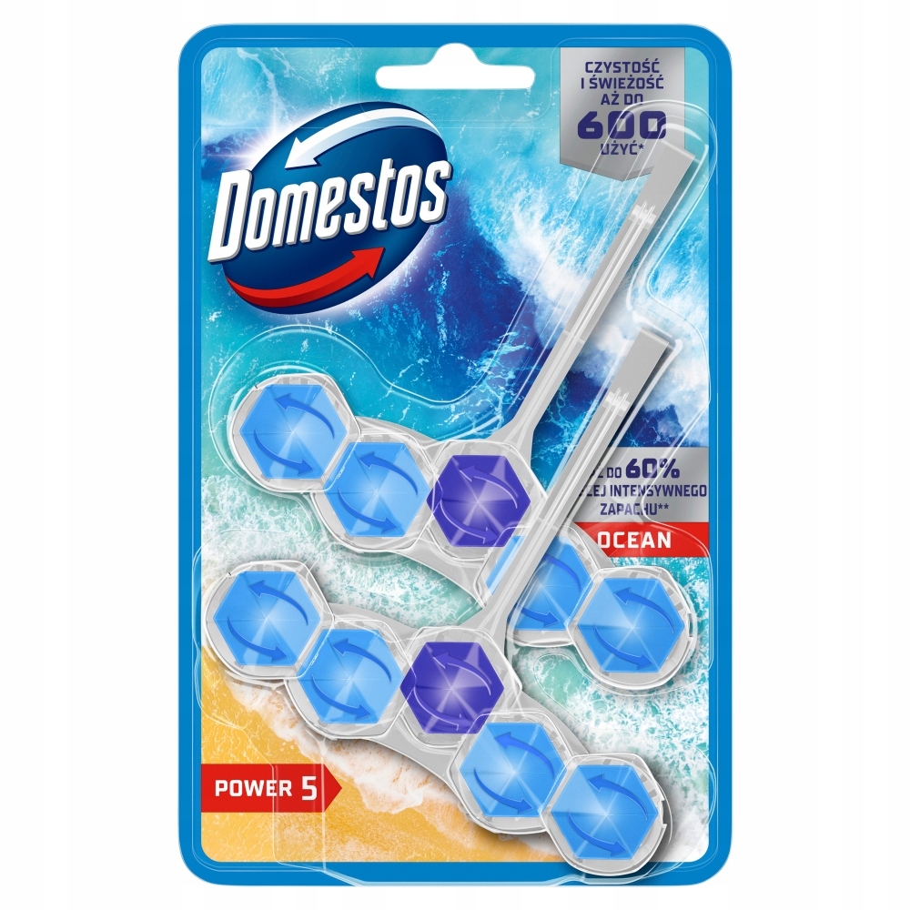 Ważna jest dla Ciebie higiena w domu i szukasz niezawodnego produktu, który bez Twojego wysiłku zadba o codzienną, nieskazitelną czystość w toalecie?Odpowiedź jest jedna: kostki toaletowe Domestos Power 5 Ocean!Wystarczy, że spłuczesz wodę, a one zapewnią: higieniczną czystość, długotrwały i świeży zapach, ochronę przed osadzaniem się kamienia, gęstą pianę i połysk. Z kostkami do WC Domestos Power 5 będziesz mieć poczucie, że świeżość w Twojej toalecie się nie kończy. Oprócz tego, że kostki Domestos Power 5 Ocean chronią przed bakteriami i zapewniają nieskazitelną czystość, dbają również o muszlę klozetową i skutecznie zapobiegają osadzaniu się kamienia. W tym wszystkim pomaga wyjątkowa formuła gęstej piany, która aktywuje się po każdym spłukaniu, zapewniając lśniącą czystość oraz powiew oceanicznej świeżości. Aby cieszyć się higieną po każdym spłukaniu, zawieś kostki na obrzeżu muszli klozetowej upewniając się, że znajdują się w zasięgu wody – i gotowe.