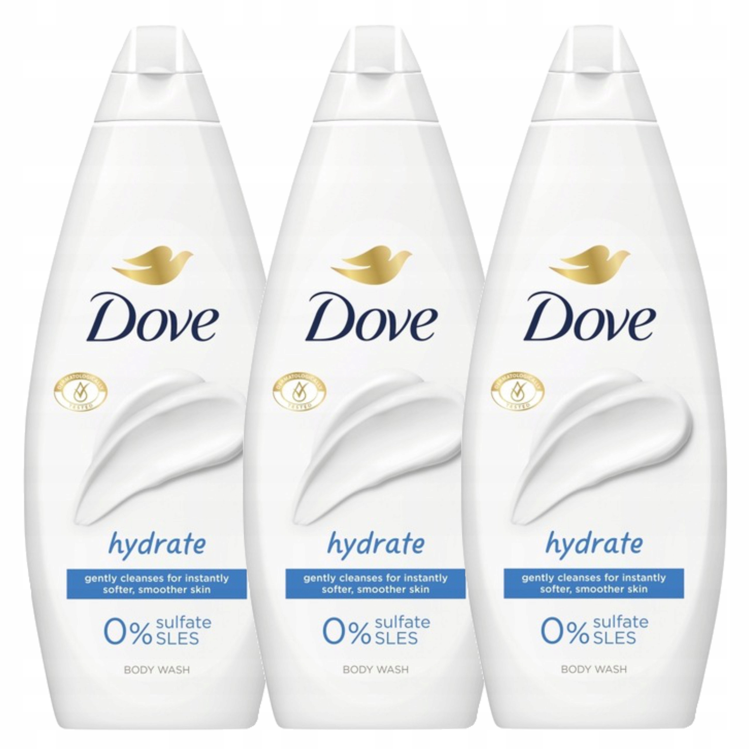 Zestaw zawiera:- 3x Dove Essential Żel pod prysznic Hydrate 720 ml