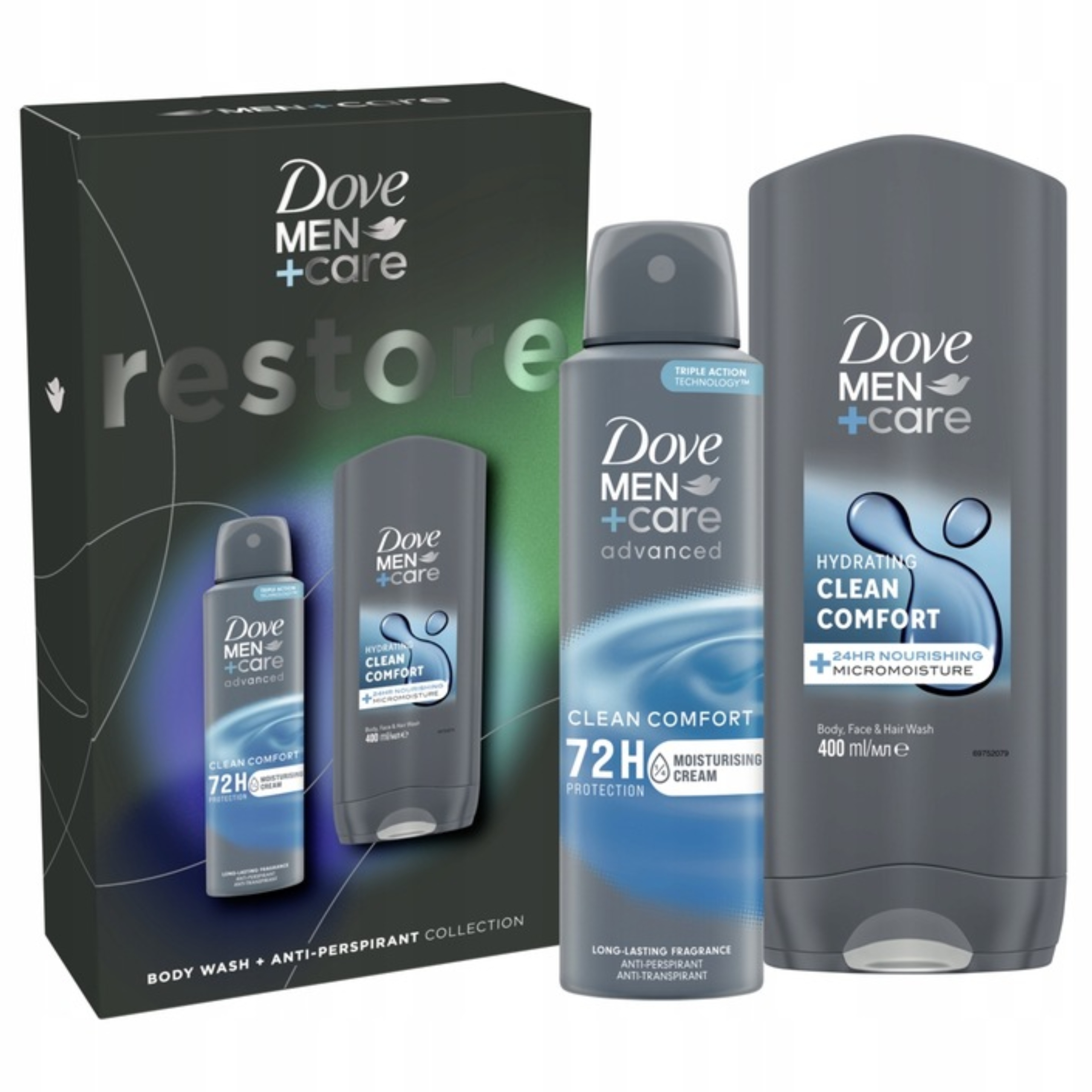 DOVE Men Care Zestaw prezentowy męski spray + żel do mycia ciała i włosów
