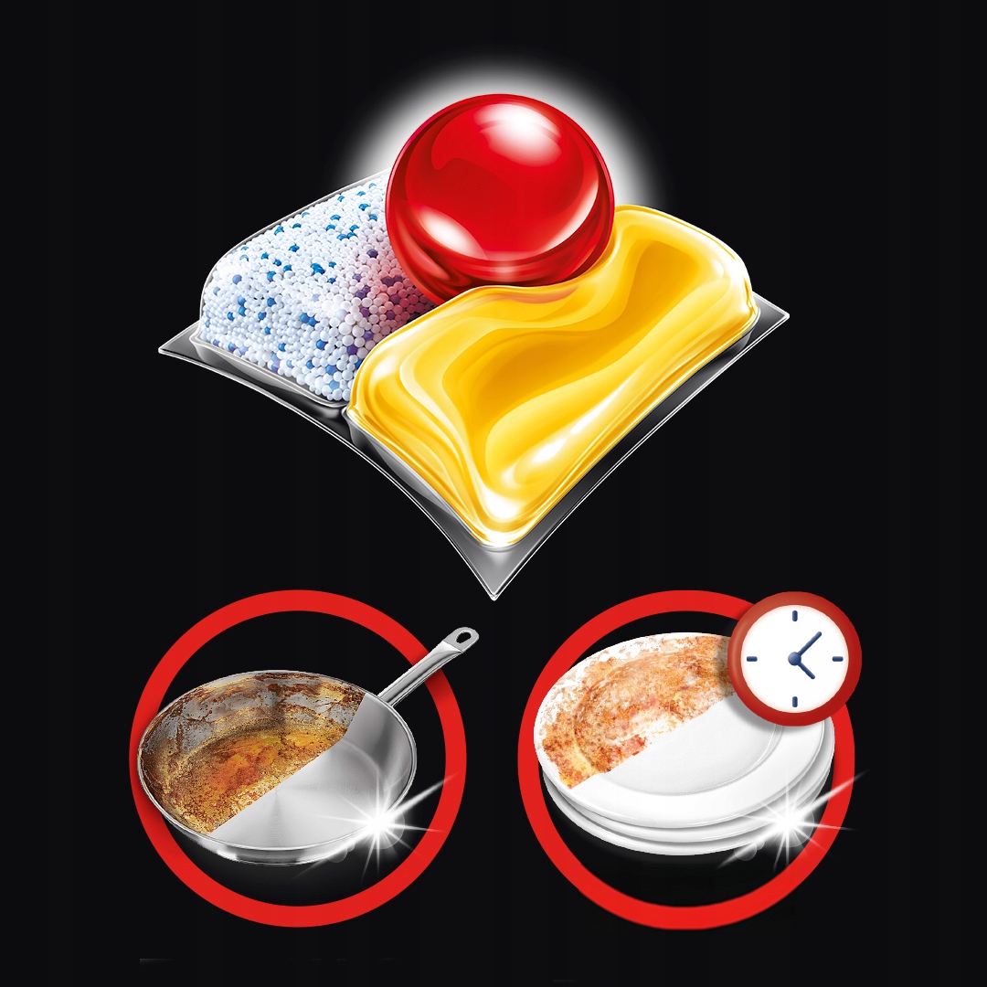 1. Płynny Powerball zapewnia olśniewający blask 2. Proszek z funkcją namaczania i czyszczenia, pomaga usunąć zalegające resztki jedzenia 3. Żel z mocą zwalczania tłuszczu, poradzi sobie nawet z najbardziej uporczywym brudem