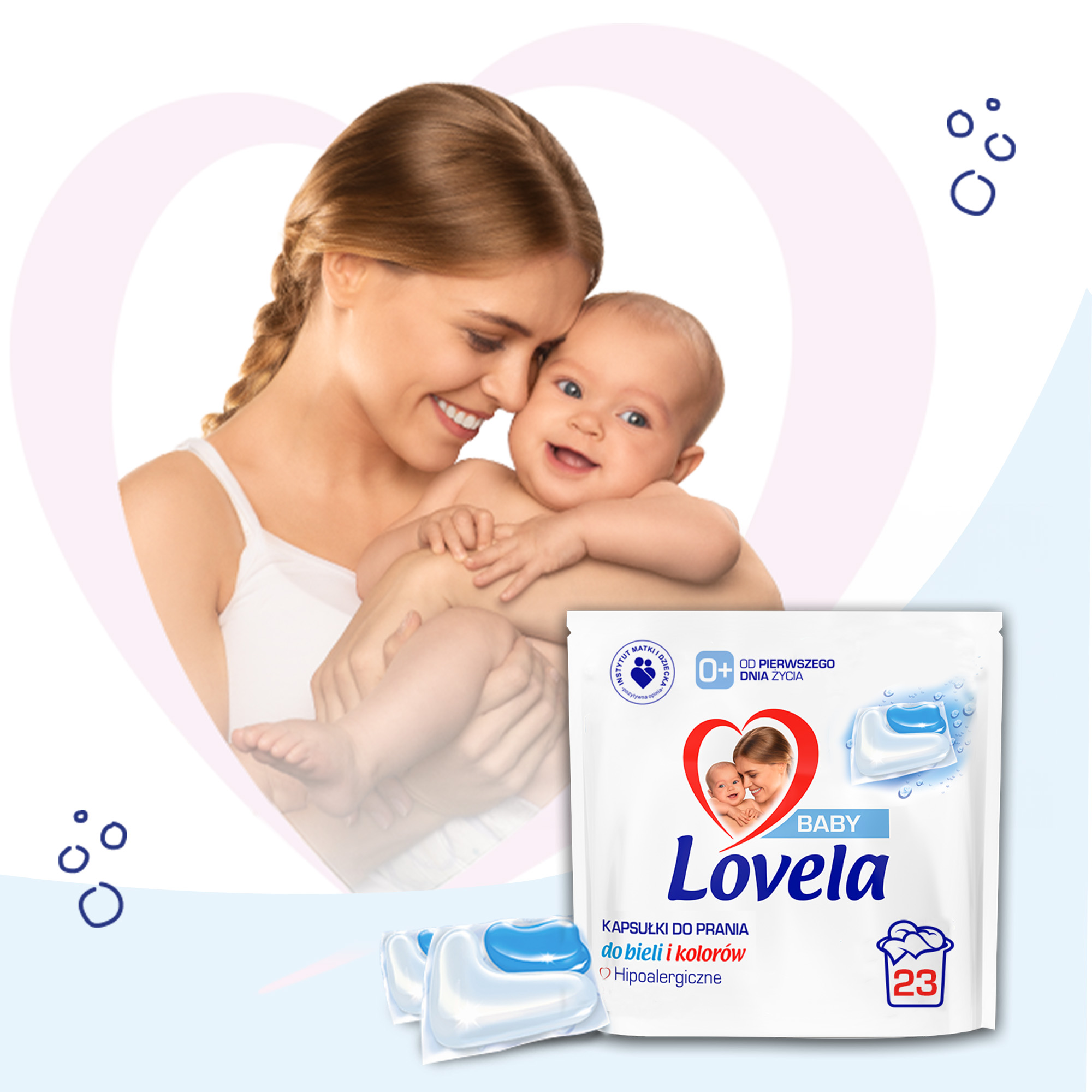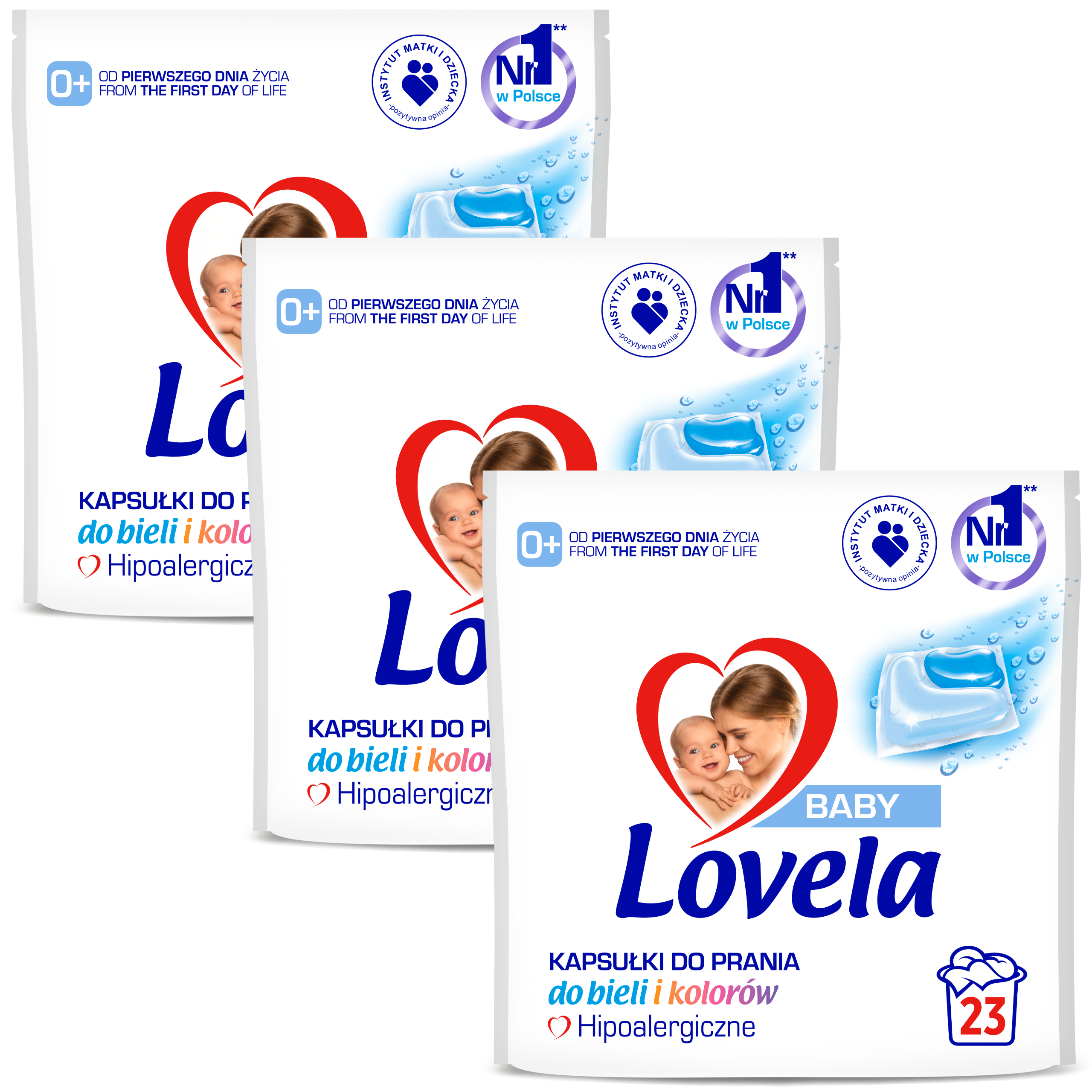 Lovela Baby Zestaw Hipoalergiczne Kapsułki do Prania Bieli Kolorów 3x23 Szt