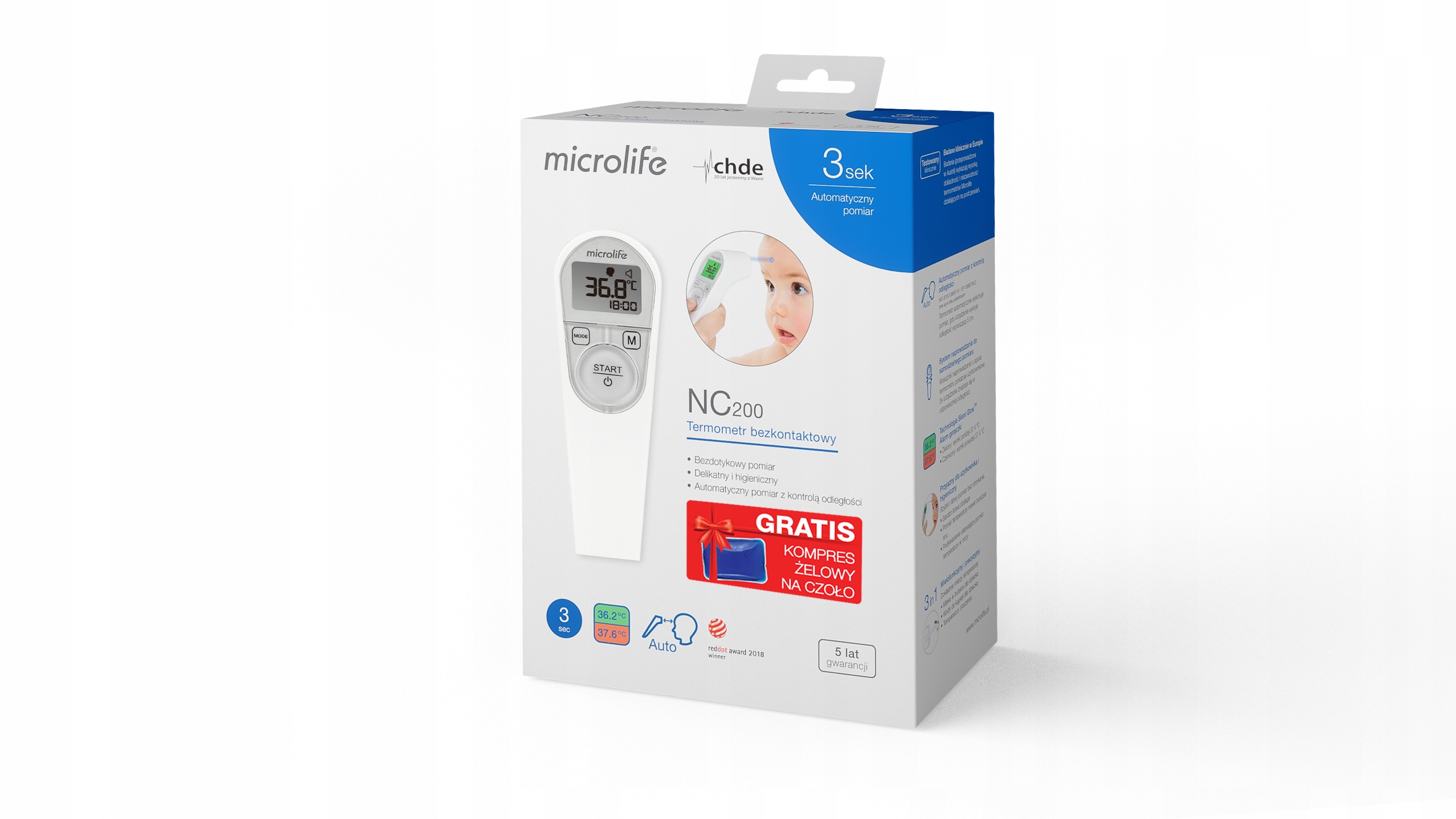 Termometr Bezdotykowy NC200 + ETUI GRATIS + BATERIE + KOMPRES ŻELOWY