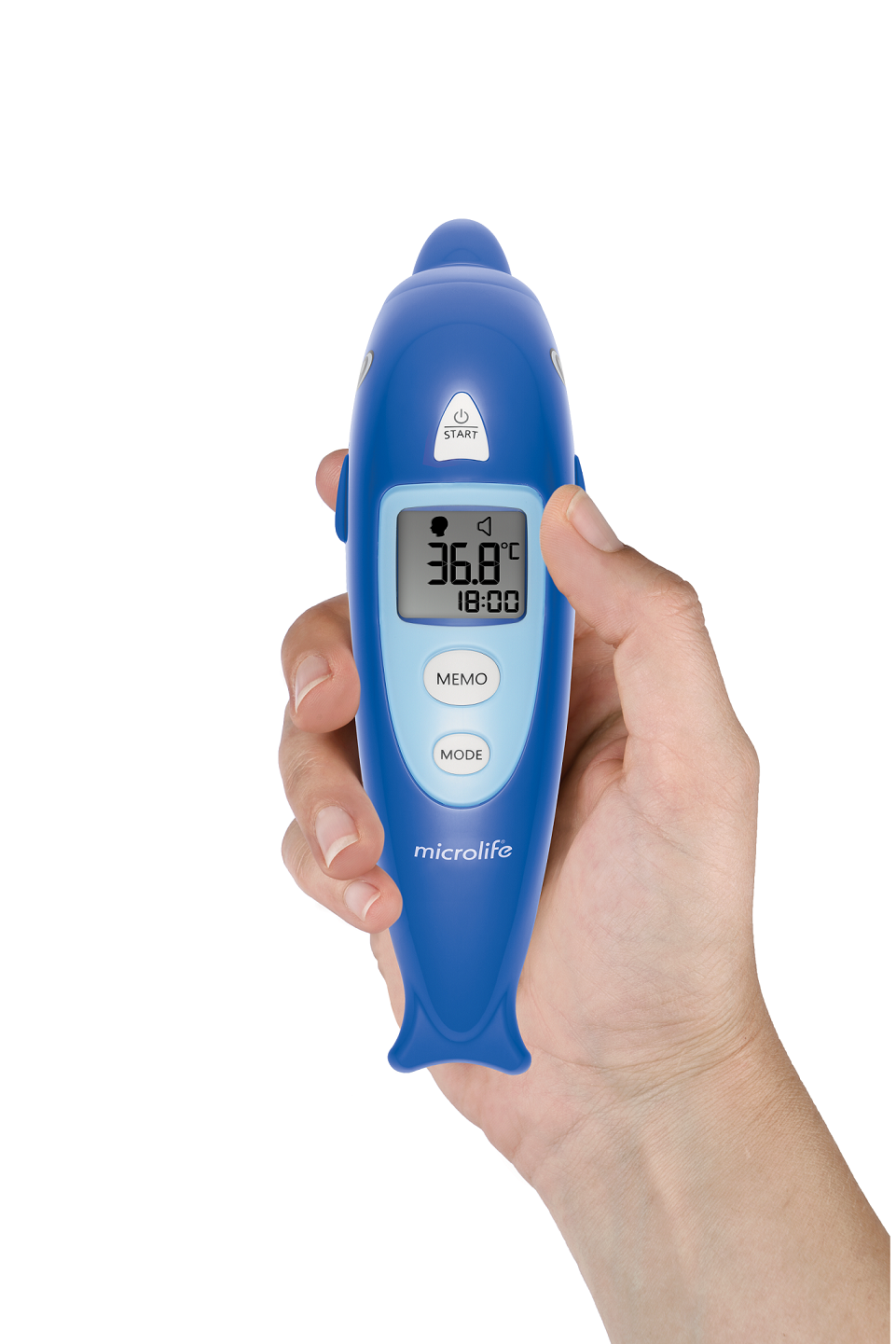 Nowy termometr bezkontaktowy Microlife NC400, oprócz swojej niezawodności, dokładności i łatwej obsługi, umożliwia delikatny i nieinwazyjny pomiar temperatury ciała bez dotykania pacjenta. Unikalna konstrukcja delfina została specjalnie opracowana, aby uczynić pomiar przyjemniejszym dla dzieci.