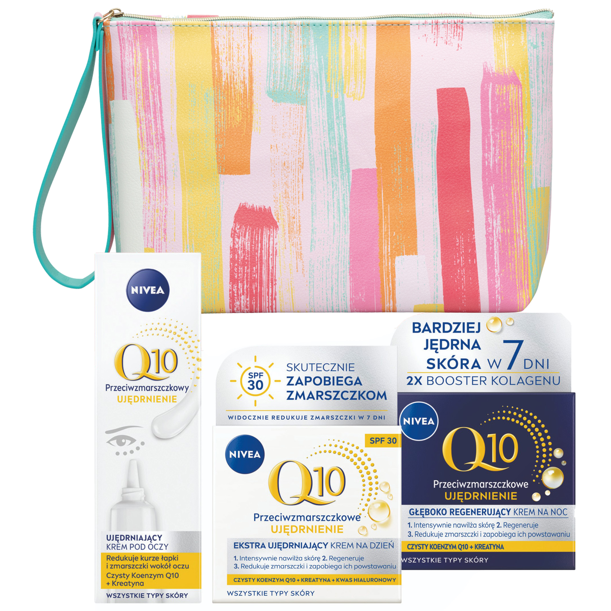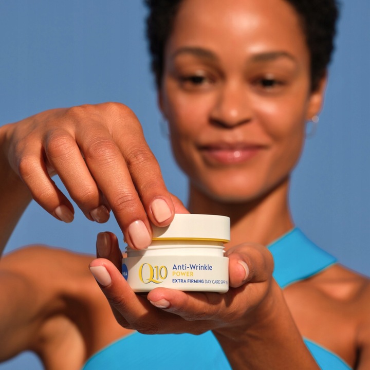 NIVEA Q10 UJĘDRNIENIE Przeciwzmarszczkowy Nawilżający krem na dzień SPF 15 zapewnia skuteczne działanie przeciwzmarszczkowe przez 24h. Formuła wzbogacona najczystszym, w 100% identycznym jak w skórze Koenzymem Q10 i Kreatyną. Chroni komórki skóry przed negatywnym wpływem wolnych rodników*. Dodaje skórze energii pomagając jej w procesie regeneracji*. Dzięki Kreatynie wzmacnia włókna ujędrniające skórę*. Innowacyjna formuła widocznie redukuje 3 typy zmarszczek: na czole o 19%**, kurze łapki o 17%**, na policzkach i wokół ust o 25%** Chroni skórę przed promieniowaniem UVA/UVB. Tolerancja dla skóry potwierdzona dermatologicznie. *badanie in-vitro **1 tyg. badanie z udziałem 47 kobiet, 2020