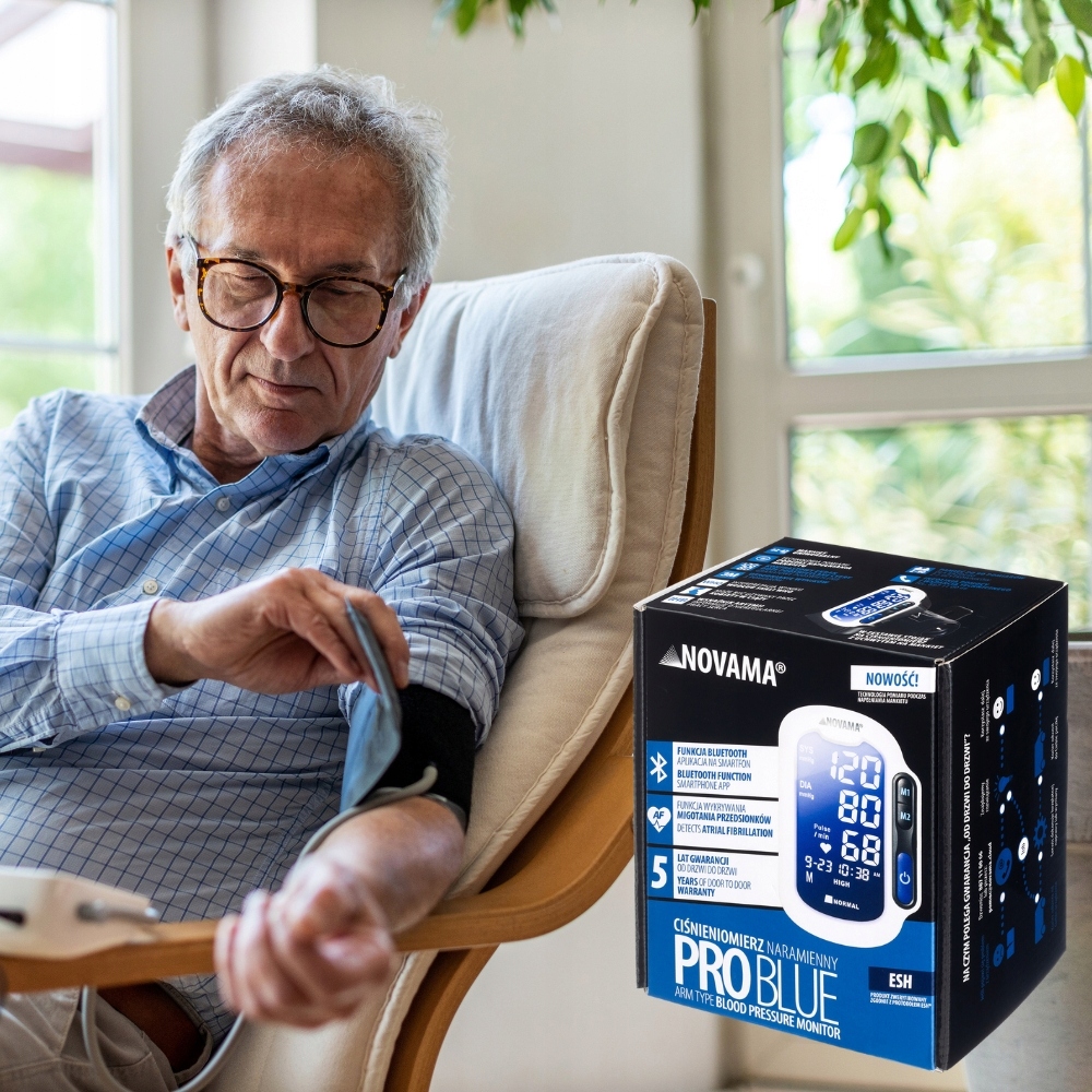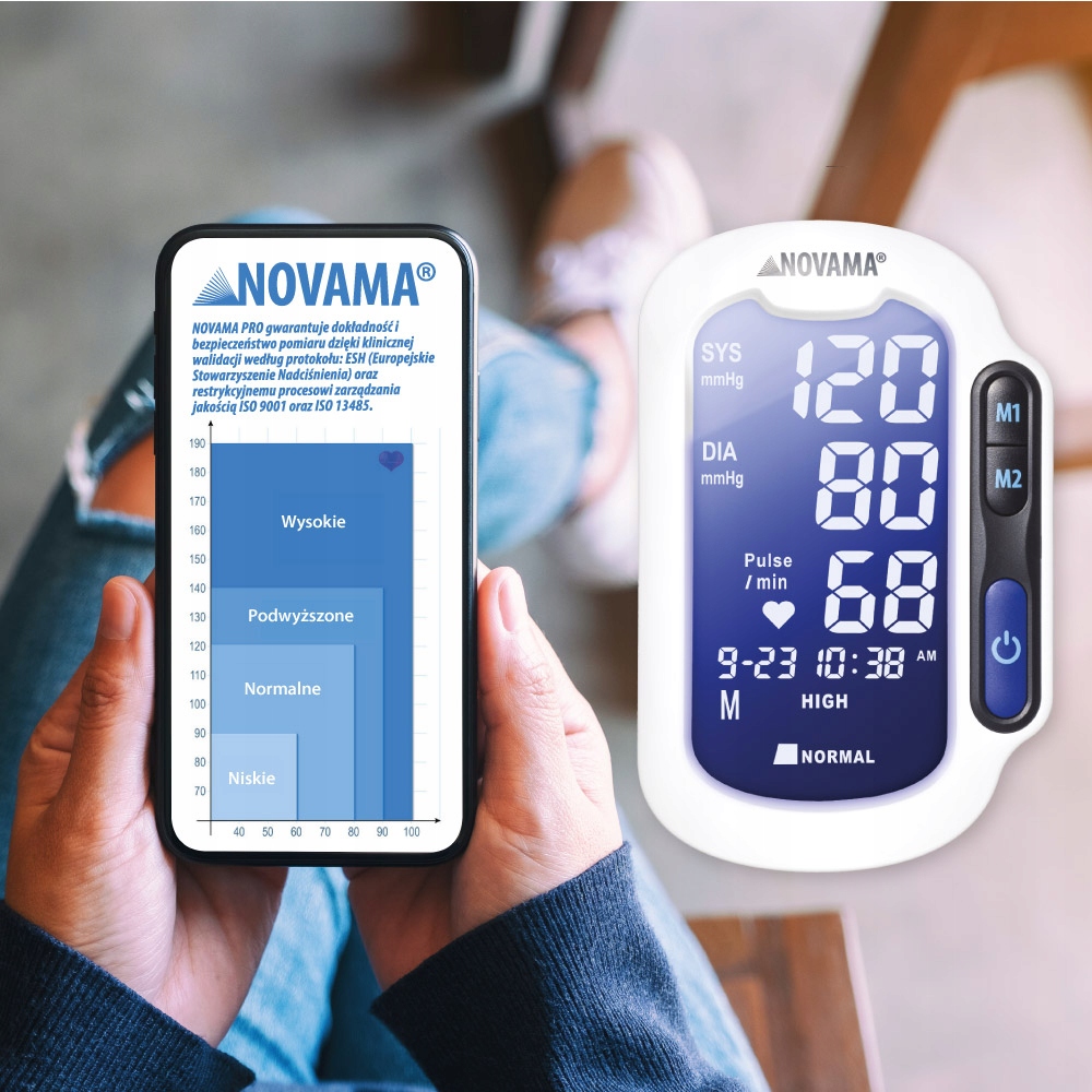 NOVAMA CIŚNIENIOMIERZ NARAMIENNY PRO BLUETOOTH MIGOTANIE ARYTMIA ESH