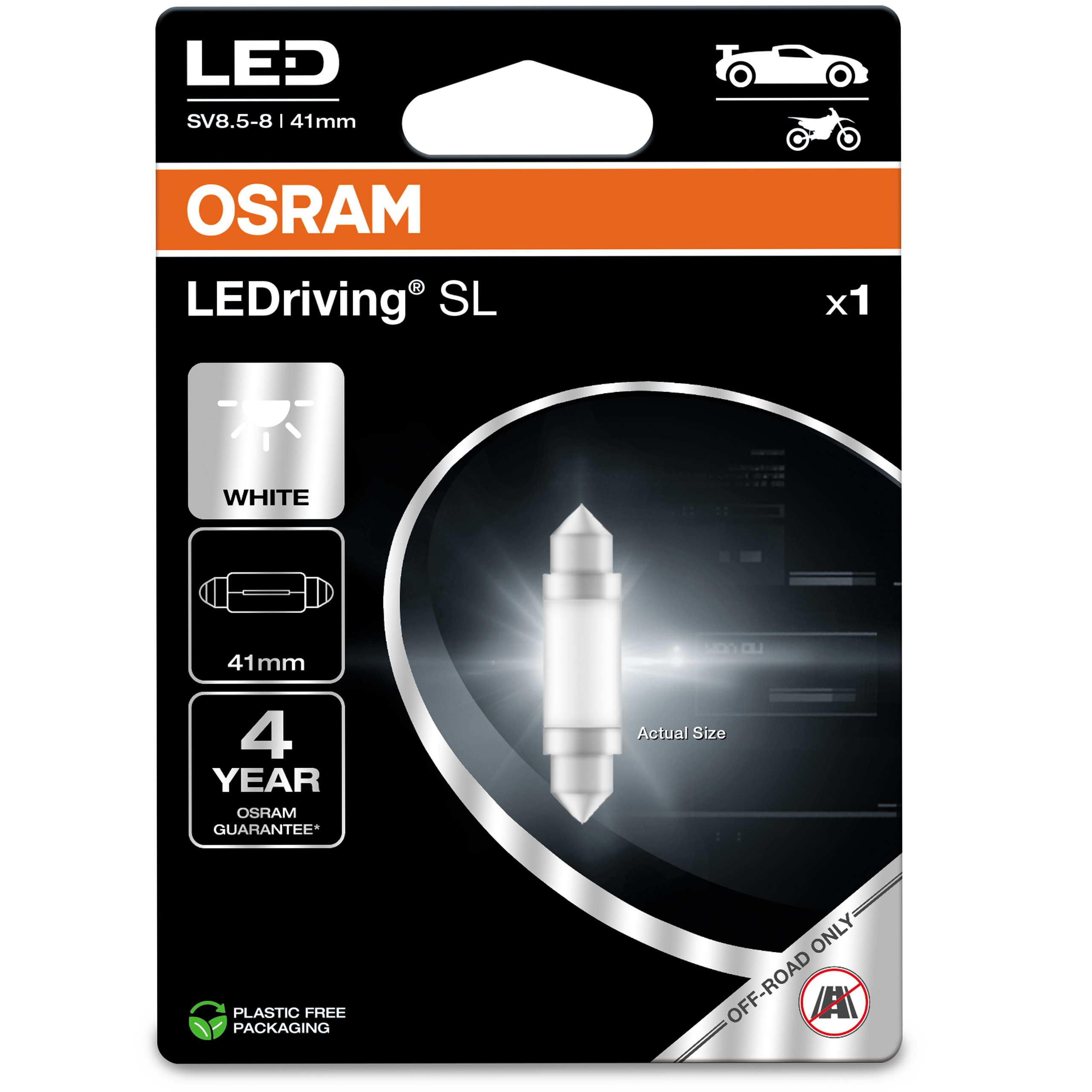 Zamiennik LED żarówek C5WZamiennik LEDriving SL C5W oferuje nowoczesne i intensywne światło o temperaturze barwowej do 6000 K. Lampy typu retrofit są alternatywą dla wszystkich tradycyjnych żarówek C5W. W porównaniu ze standardowymi żarówkami, retrofity LED zużywają o 80% mniej energii. Produkty te nie posiadają homologacji ECE. Oznacza to, że nie wolno ich używać w oświetleniu zewnętrznym w pojazdach poruszających się po drogach publicznych.NOWE PAPIEROWE OPAKOWANIA WOLNE OD PLASTIKU!