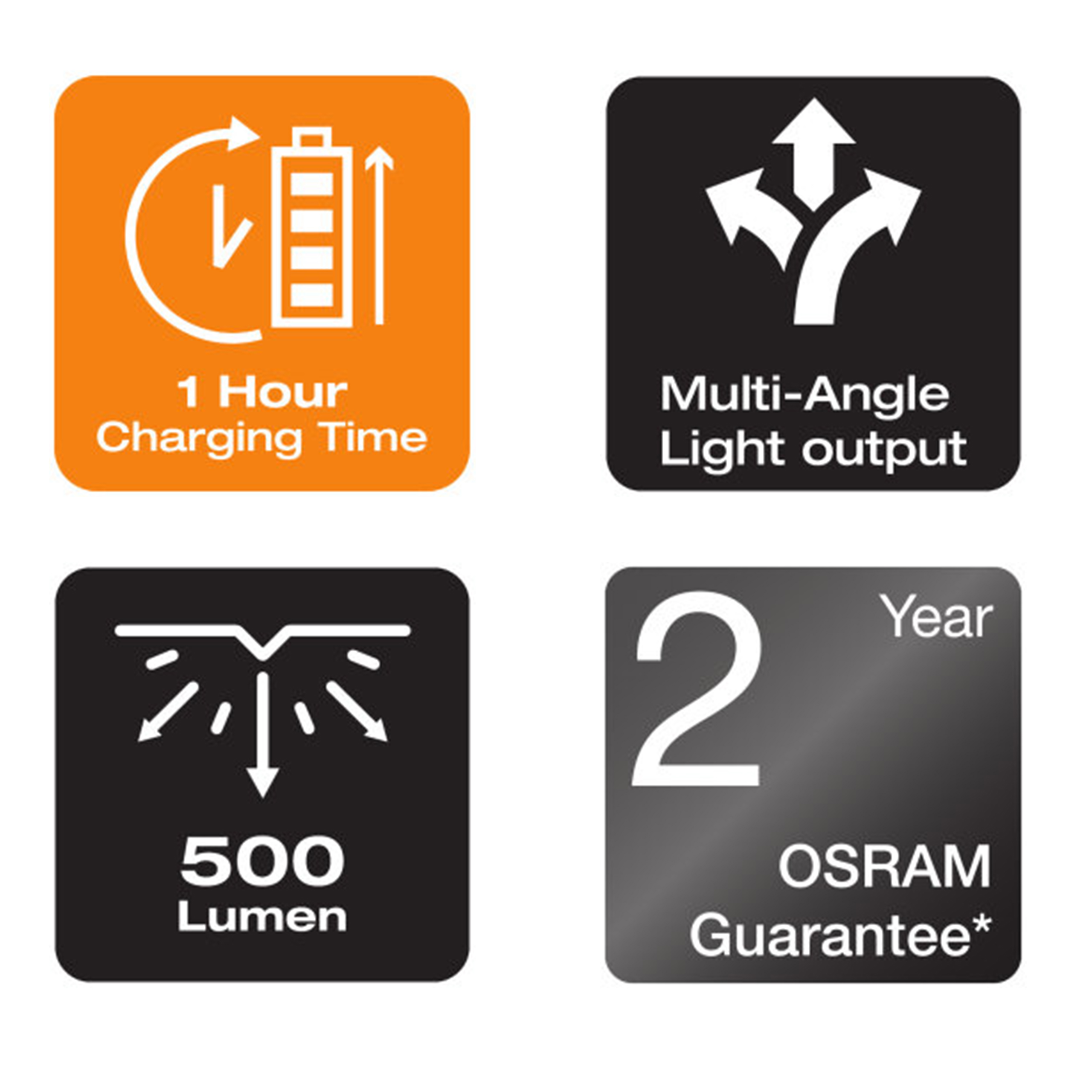 Światło jest wszechstronne Ta wysokiej jakości lampa inspekcyjna firmy OSRAM jest idealna do użytku profesjonalnego i prywatnego. Dzięki dwóm funkcjom oświetlenia - głównemu oświetleniu do 500 lm i funkcji pochodni o mocy do 100 lm, można uzyskać odpowiedni strumień świetlny w zależności od zadania. Podczas gdy ładowanie niektórych lamp inspekcyjnych trwa do trzech godzin, funkcja szybkiego ładowania FAST CHARGE PRO 500 pozwala naładować lampę od 0% do 100% w zaledwie około 1 godzinę, jednocześnie zapewniając długą żywotność. Lampkę inspekcyjną można ładować, a zintegrowany wskaźnik poziomu naładowania pokazuje aktualny stan baterii. Kabel do ładowania USB typu C i odpowiedni zasilacz wchodzą w zakres dostawy. Zgodnie ze stopniem ochrony IP65, Ta lampa inspekcyjna jest zabezpieczona przed wnikaniem kurzu i wody oraz została przetestowana pod kątem odporności na uderzenia zgodnie z normą IK08. Ta dioda LED jest łatwa do przenoszenia, ma antypoślizgową i odporną na zabrudzenia powierzchnię, zawiera zintegrowany haczyk i magnesy do pracy bez użycia rąk i łatwe mocowanie, dzięki czemu idealnie nadaje się do prac rzemieślniczych, napraw samochodów i w życiu codziennym.- Technologia szybkiego ładowania