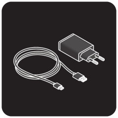 Akumulator. W zestawie znajduje się kabel zasilający USB oraz wtyczka sieciowa.