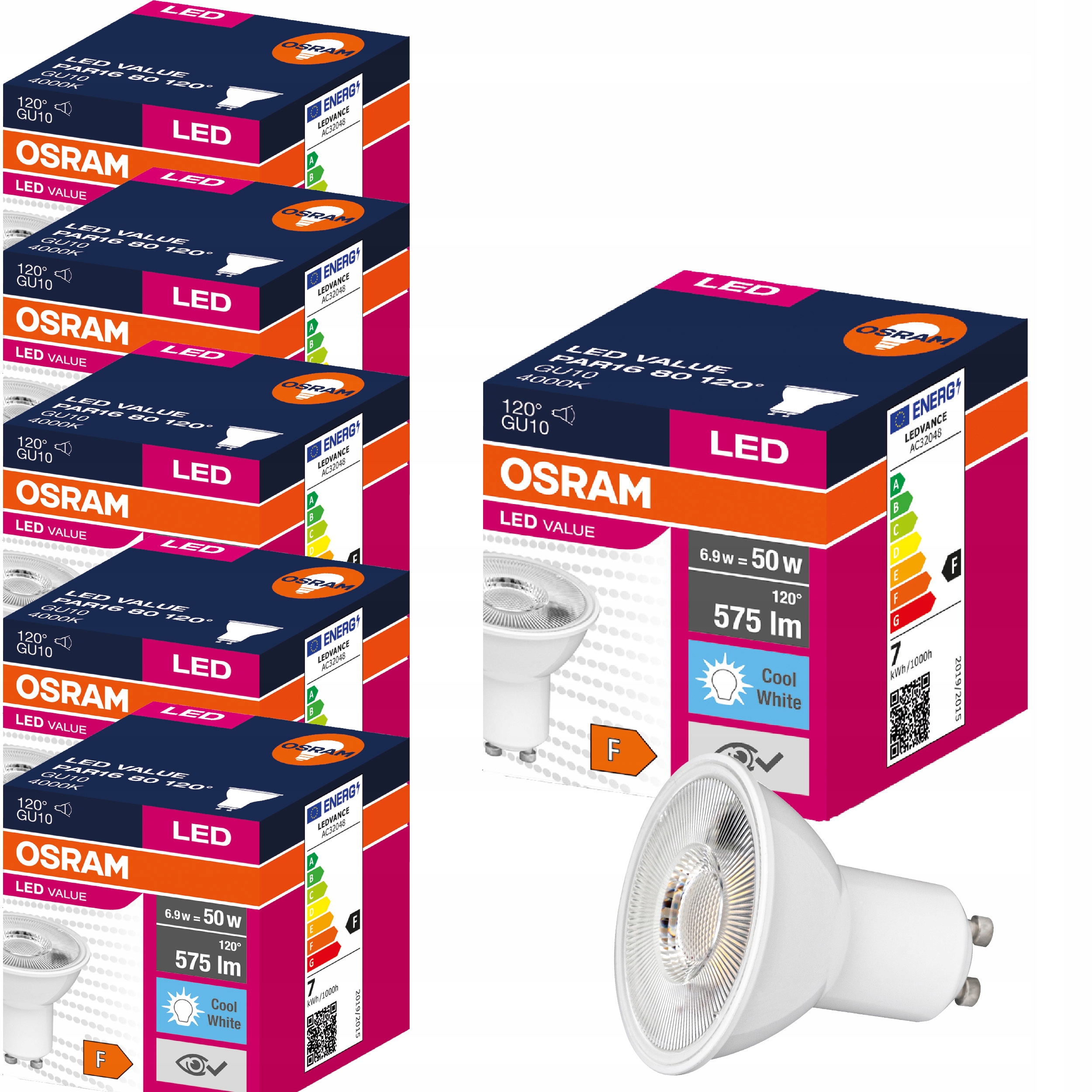 6x ŻARÓWKA LED HALOGEN z serii VALUE PAR16 uznanej na rynku marki OSRAM to najnowsze źródło światła z trzonkiem GU10 o mocy 6,9W (odpowiednik 50W) i kącie świecenia 120°. Żarówka emituje neutralną barwę światła 4000K o strumieniu świetlnym 575lm. Firma OSRAM wykorzystując innowacyjną TECHNOLOGIĘ LED gwarantuje nam bardzo wysoką jakość światła oraz rzeczywiste odzwierciedlenie barw. Najważniejszą cechą żarówek LED jest ich zmniejszone pobór energii nawet o 90% względem tradycyjnych źródeł światła.GŁÓWNE CECHY PRODUKTU: