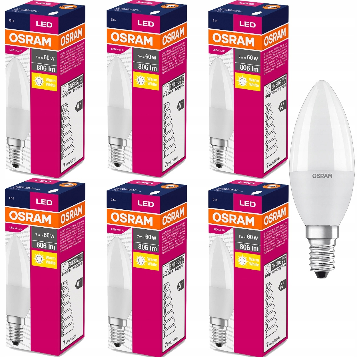 Żarówka LED ŚWIECZKA E14 7W = 60W 806lm CIEPŁA 2700K OSRAM x 6