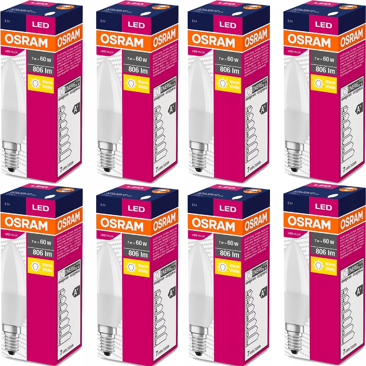 Żarówka LED ŚWIECZKA E14 7W = 60W 806lm CIEPŁA 2700K OSRAM x 8