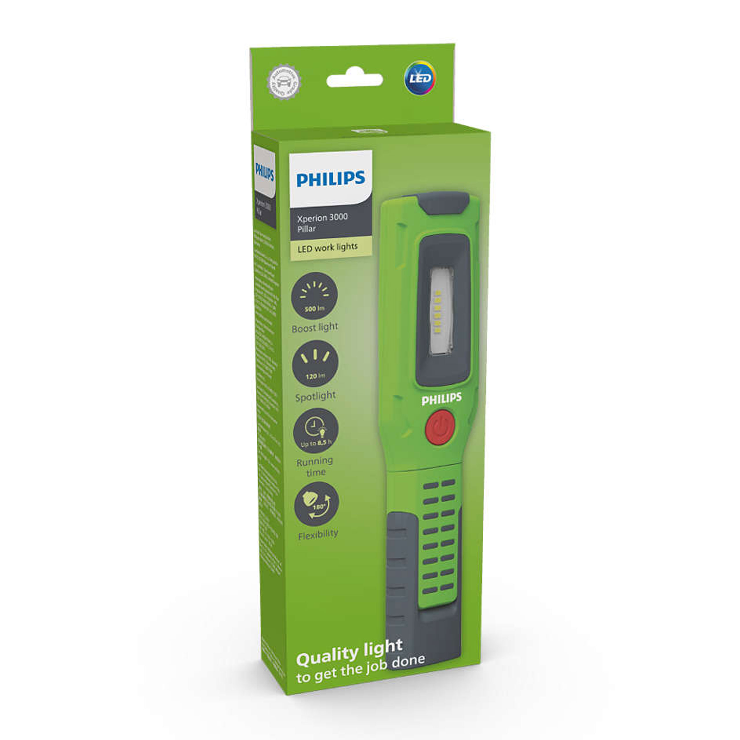 Dzięki mocnemu, jasnemu światłu, antypoślizgowemu uchwytowi, lekkiej konstrukcji i wszechstronności, Philips Xperion 3000 Pillar to doskonała bezprzewodowa lampa robocza LED do codziennego użytku. Wyposażono ją nawet w poręczny reflektor, który pomaga widzieć w ciasnych przestrzeniach.