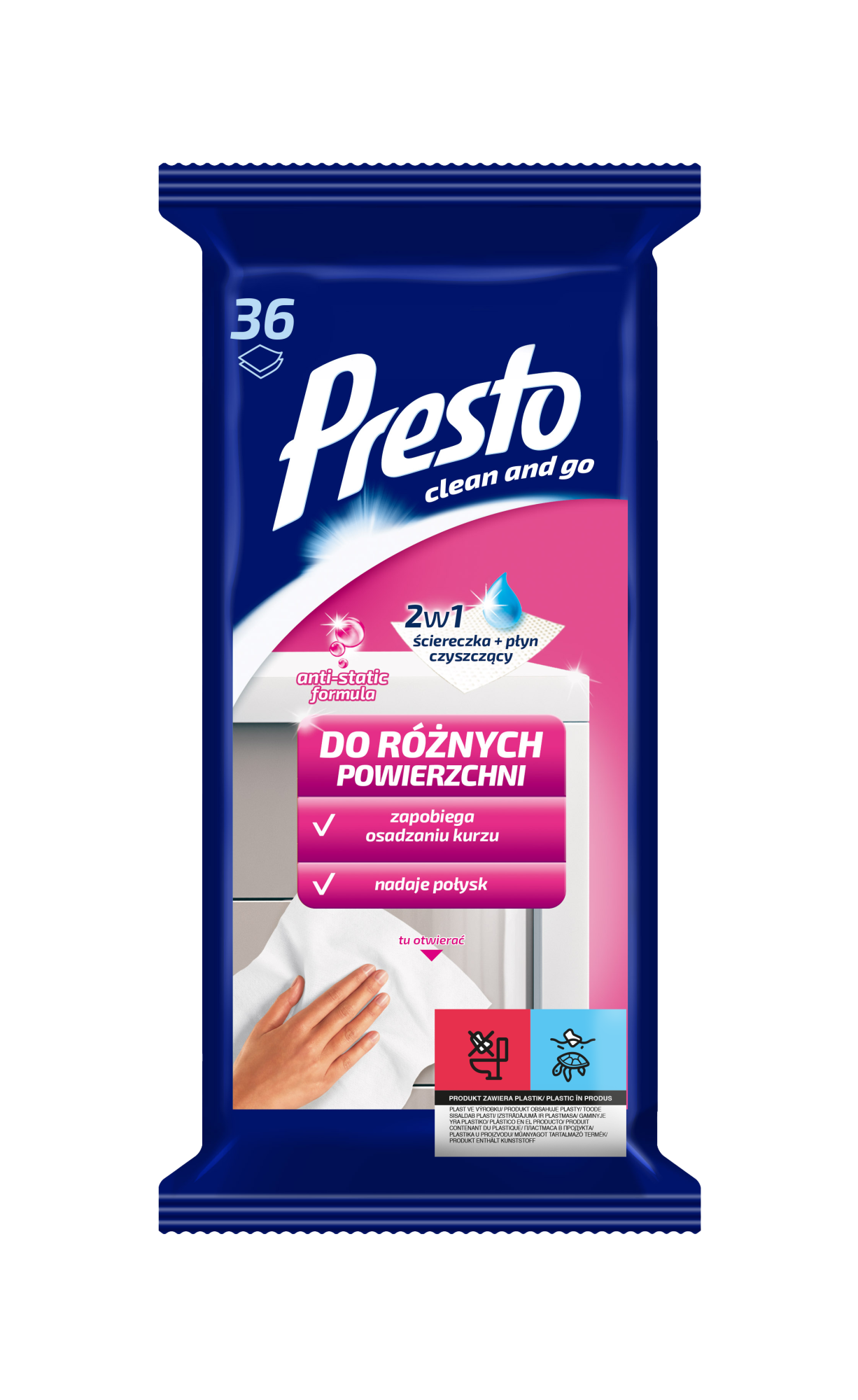 Presto Ściereczki nawilżane do różnych powierzchni, 36 szt.