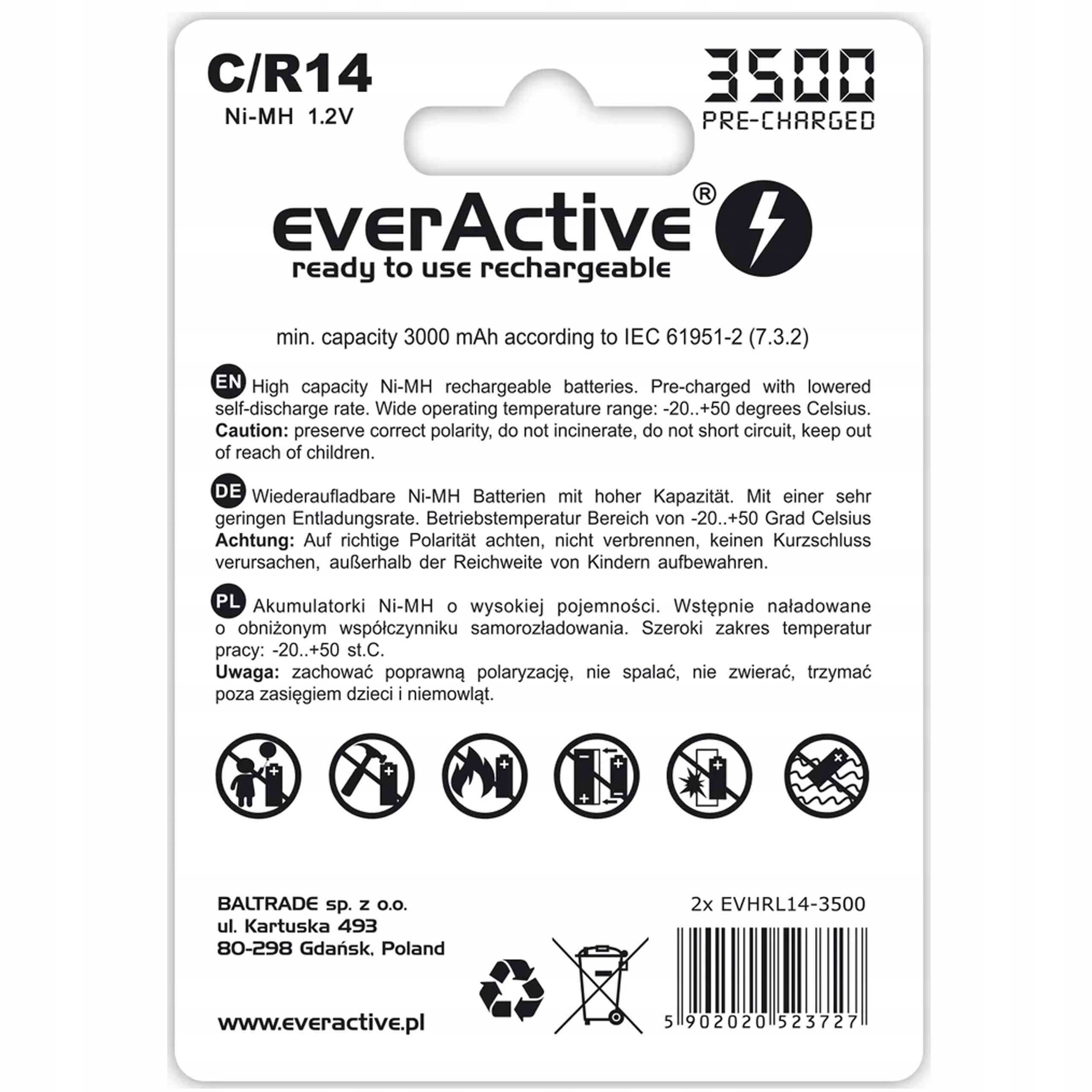 everActive Akumulatorki R14/C Ni-MH 3500 mAh Ready to Use 2szt.